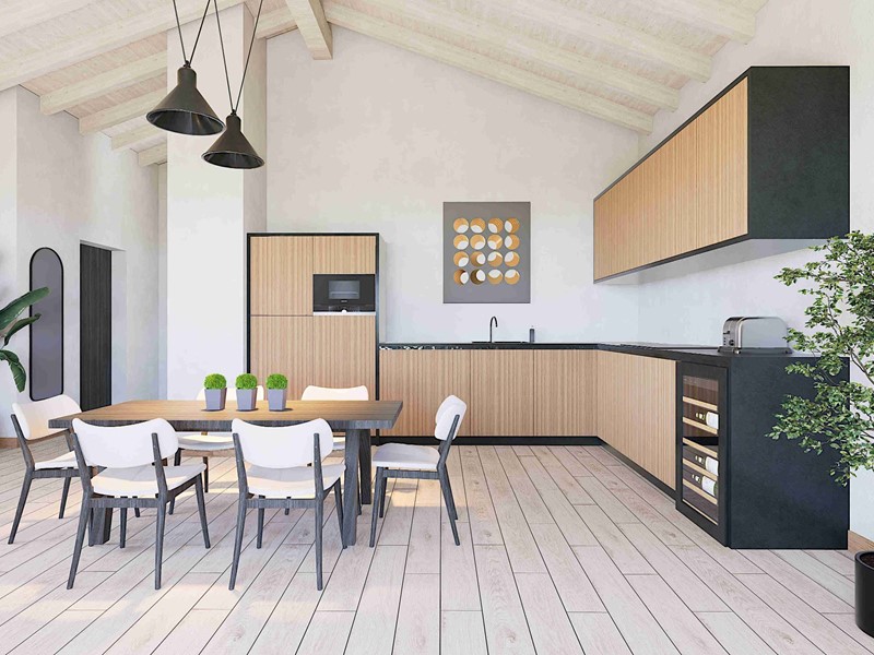 - finiture interne di prima scelta da personalizzare, già inclusi ad esempio: pavimenti e rivestimenti in grès porcellanato, sanitari sospesi, porta blindata, videocitofono.