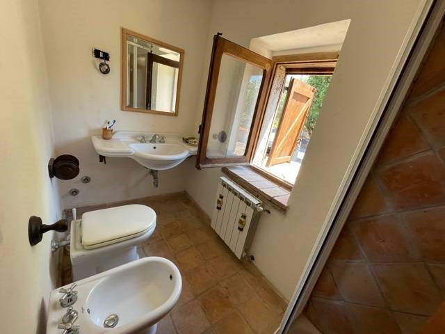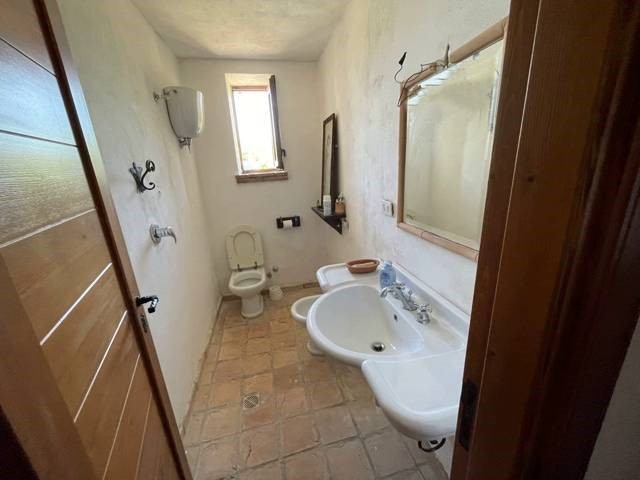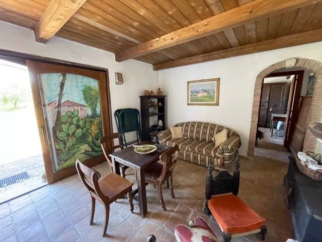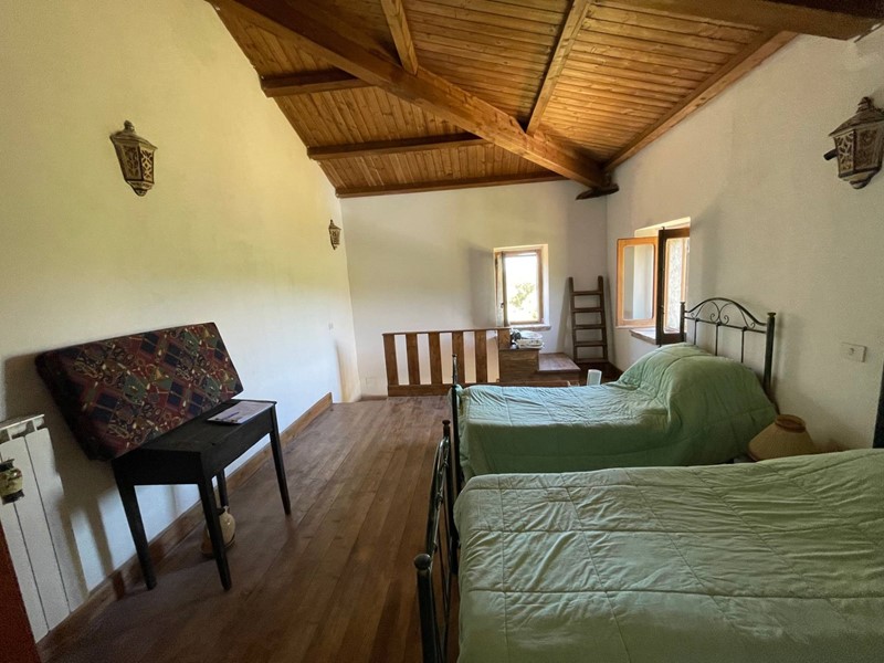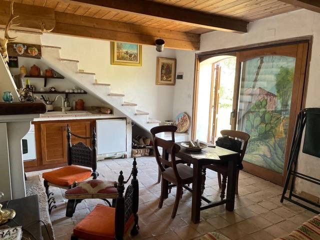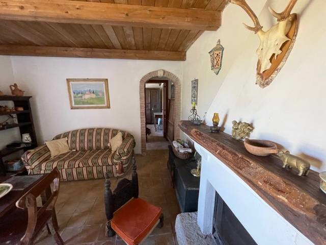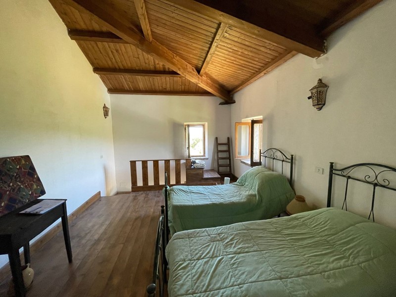 Gli interni, su due livelli, sono il risultato di un restauro conservativo nel rispetto della tradizione, frutto di una ricerca attenta dei materiali. Le travi a vista in legno, il solaio in legno e i materiali di recupero utilizzati, appaiono in sintonia con il paesaggio circostante, pietra del luogo, legno e coccio naturale. Le due stanze da letto, ciascuna con il suo bagno, sono indipendenti e il soggorno è dotato di angolo cottura, tv e termocamino. L'arredamento interno ed esterno è compreso nella compravendita. Classe energetica in fase di valutazione