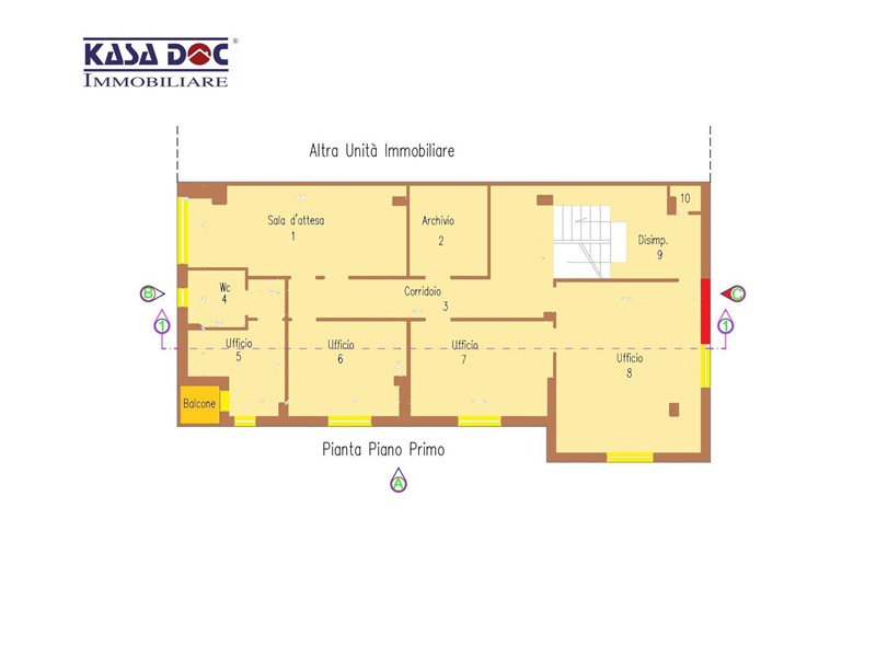 Lo stabile, di categoria catastale A/10, perfetto per attività professionali, si sviluppa su tre livelli offrendo ampi spazi per ogni esigenza lavorativa.