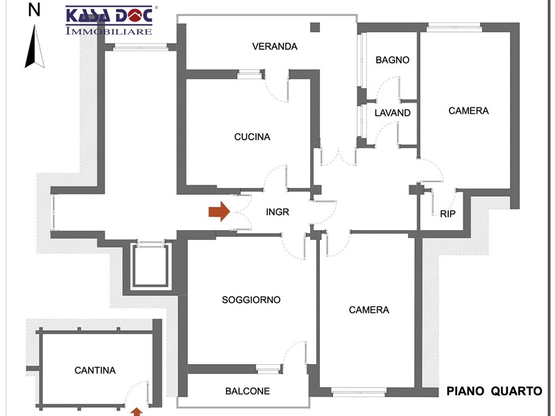 zona giorno composta da un soggiorno e una cucina abitabile con accesso a un balcone verandato che offre maggiore funzionalità e spazio. La zona notte è composta da due camere da letto, un bagno con vasca, lavanderia e un piccolo ripostiglio.