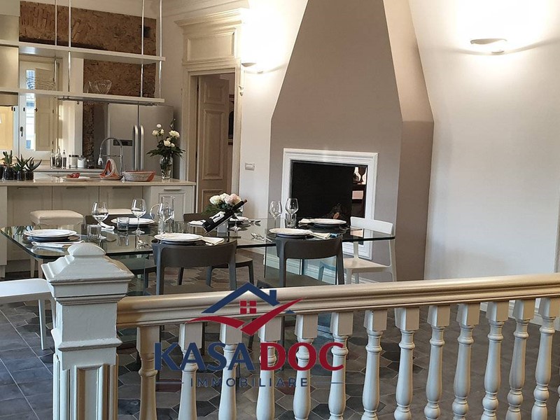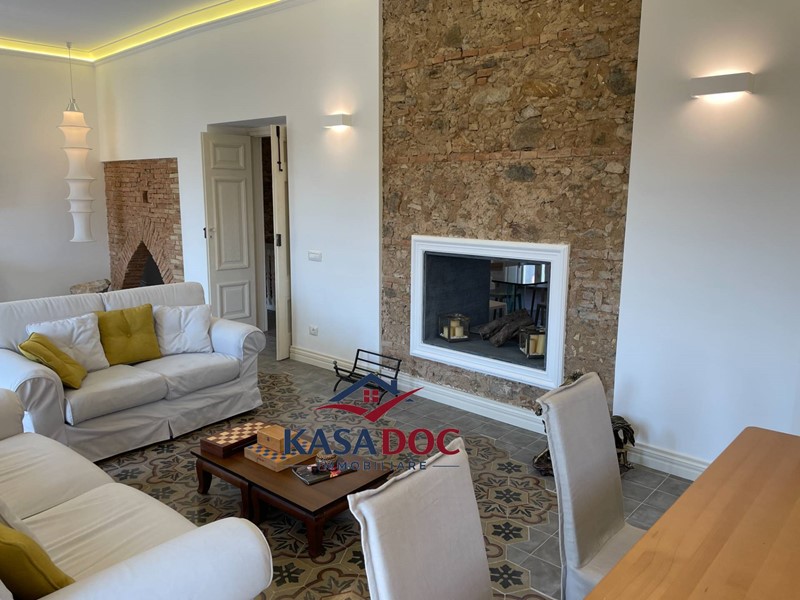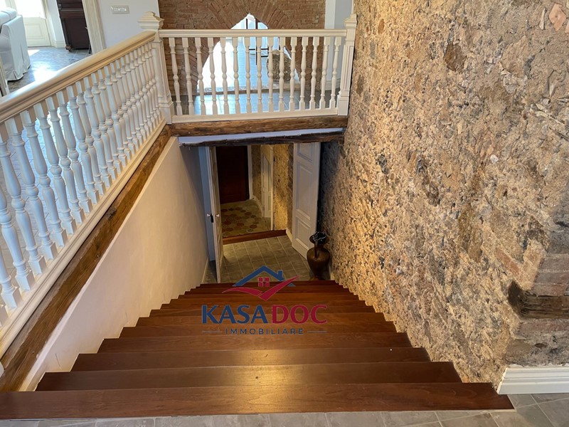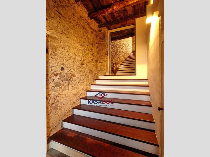 - Primo piano: attraverso uno splendido ingresso in legno e pietra si accede a un ampio salone con camino a due vie, una spaziosa cucina a vista con zona pranzo, tre camere da letto (due matrimoniali, di cui una con bagno privato, e una con letti singoli), oltre ad altri due bagni.