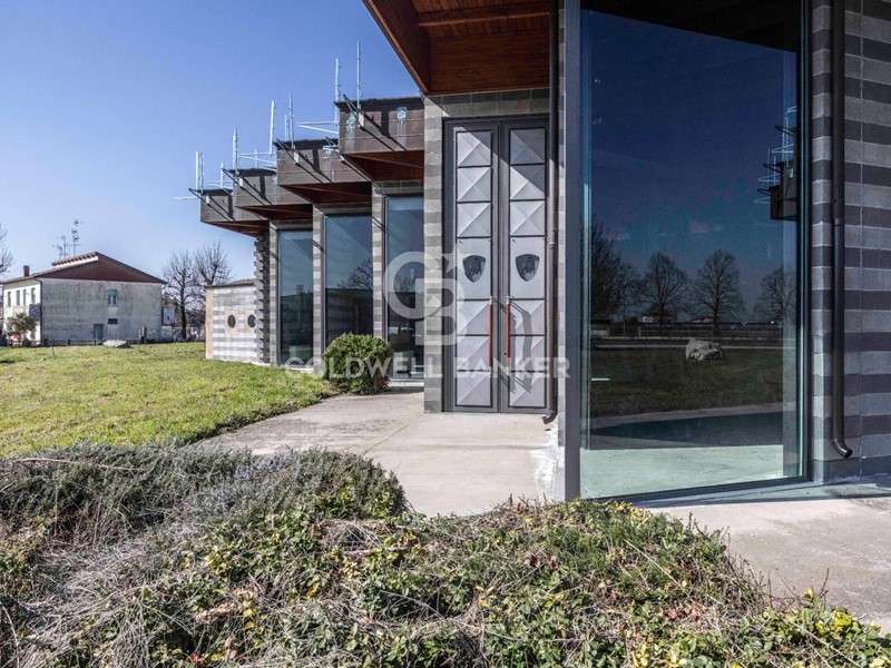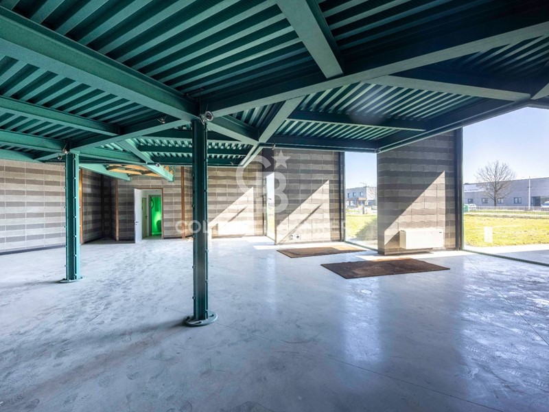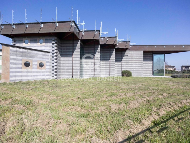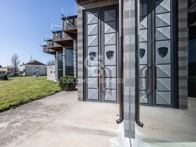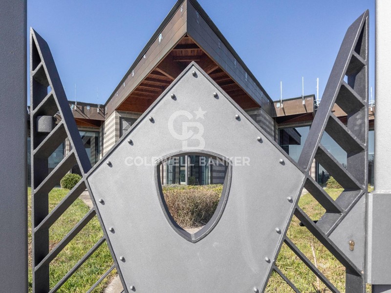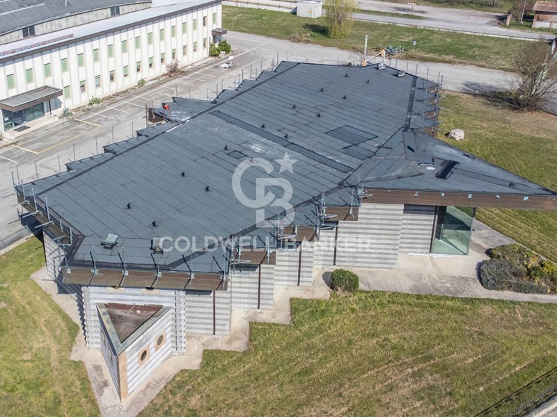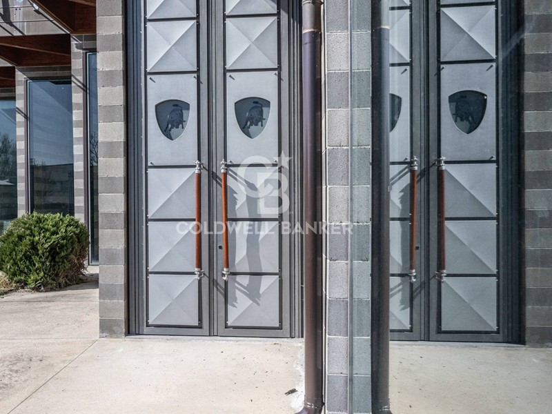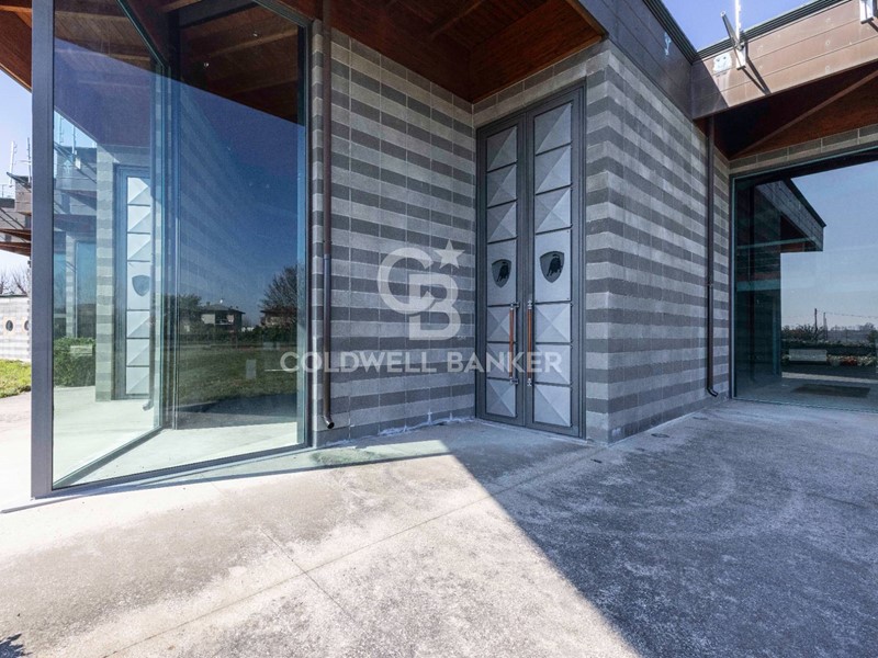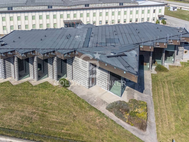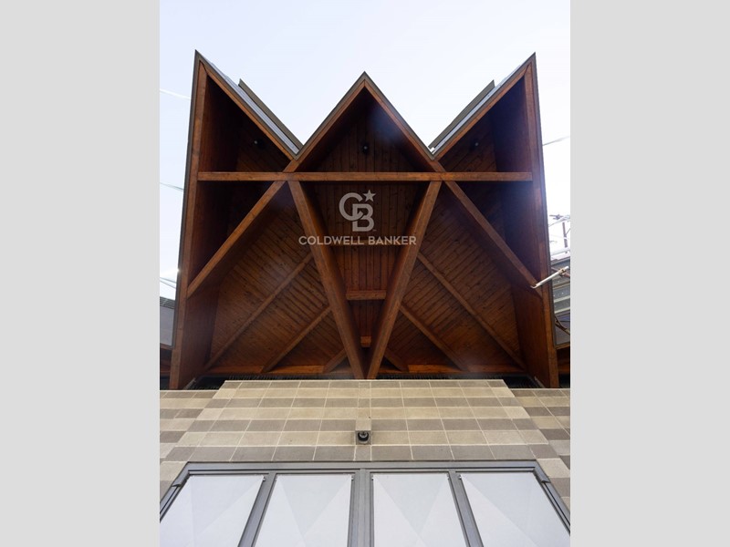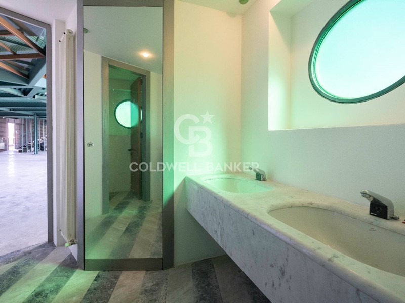 La proprietà si estende su una superficie di circa 1300 mq, circondata da un elegante giardino di 1500 mq. Al suo interno, ledificio è strutturato in un ampio open space, con un soppalco di 320 mq e tre spaziosi bagni di servizio. La particolare progettazione architettonica permette di sfruttare al meglio la luce naturale, che illumina lintero spazio grazie a otto grandi vetrine. Lutilizzo del "lecablocco", un materiale innovativo con fasce cromatiche alternanti grigio perla e grigio antracite, dona alla struttura una geometria pulita ed equilibrata, garantendo al contempo un'ottima performance in termini di isolamento termico e un impatto estetico distintivo.