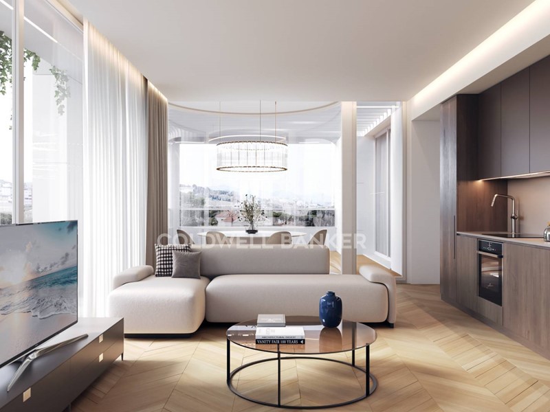 L'ingresso conduce alla luminosa zona giorno, dove una cucina a vista di ultima generazione si affaccia su un'ampia area pranzo, perfetta per momenti conviviali.