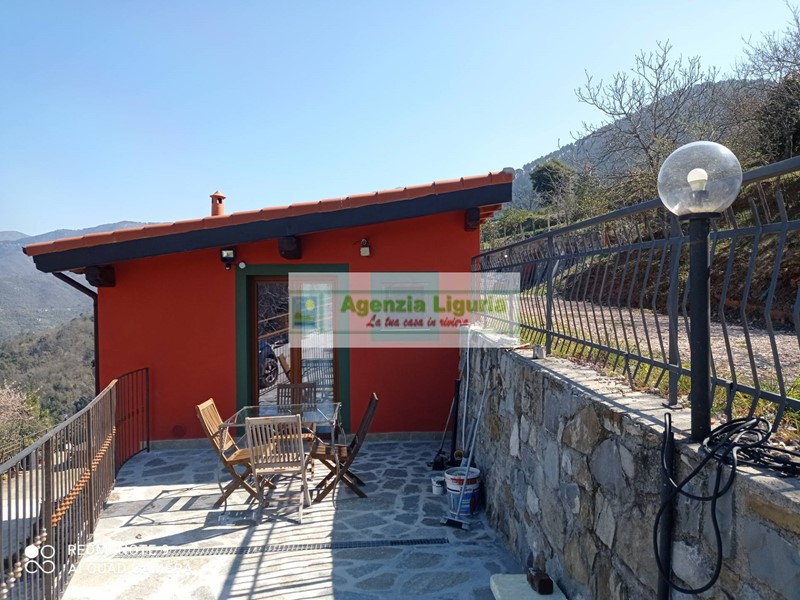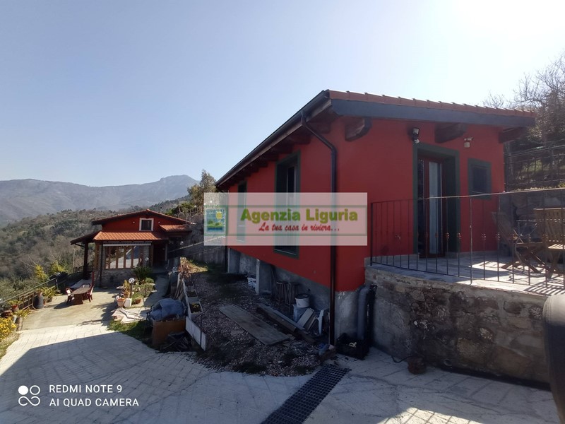 Un tranquillo angolo di paradiso, a soli 20 minuti dalle famose spiagge di Bordighera. Magnifica proprietà con suggestiva vista sulle colline e ampi spazi aperti. Circondata da terreni prevalentemente suddivisi in tipiche fasce. La villa è composta da un edificio principale su due piani. Al piano inferiore di circa 70 mq una bellissima veranda apre sulla porta d'ingresso dove troviamo il soggiorno con cucina aperta, bagno e camera da letto. Al piano superiore con ingresso indipendente, stupenda mansarda di circa 48 mq, tutta in legno massello, stile loft, con letto matrimoniale e bagno con doccia. In una casetta attigua si trova un ampio monolocale di circa 45 mq con cucina a vista e bagno con doccia. Ottime finiture di qualità. Parcheggio esterno per tre auto. Possibilità di aggiungere terreni adiacenti ad un prezzo supplementare.