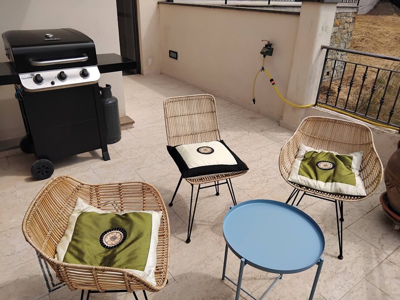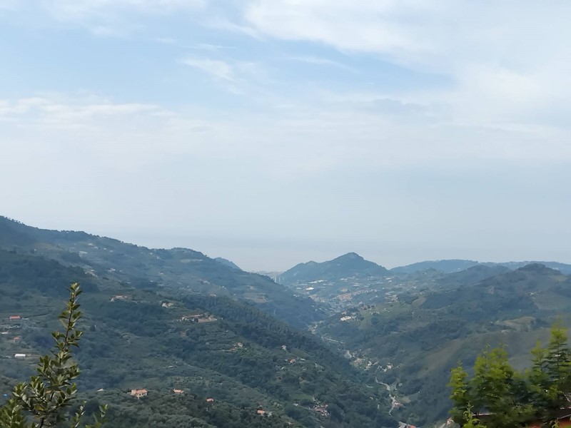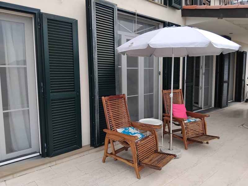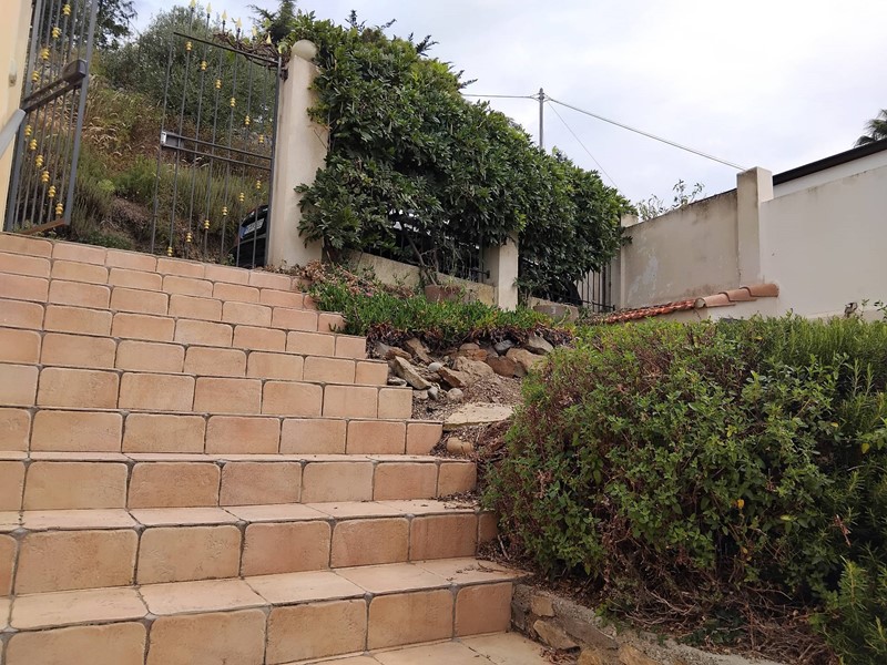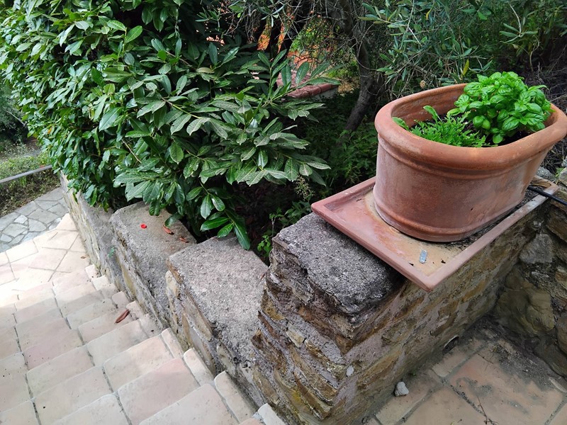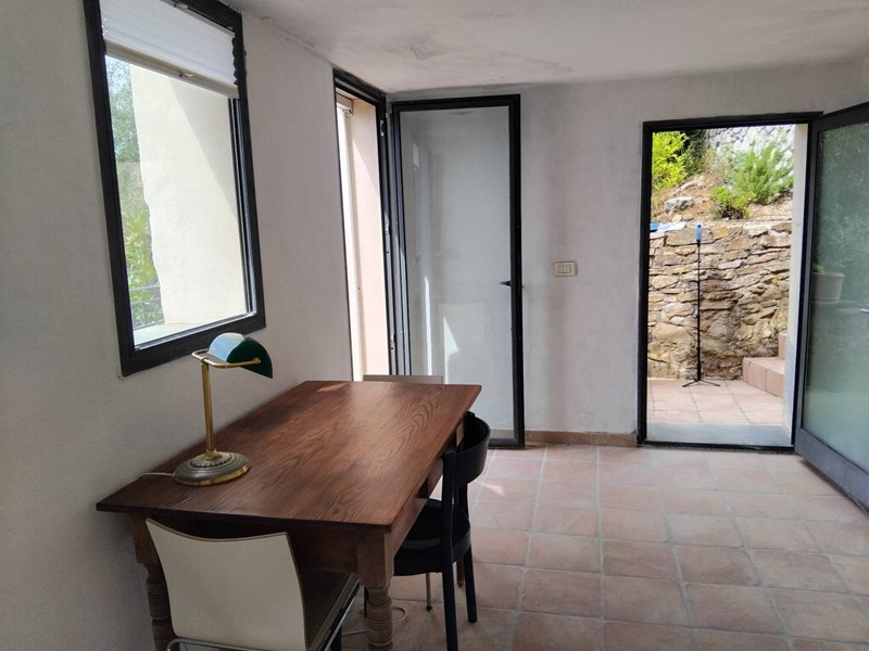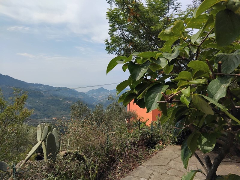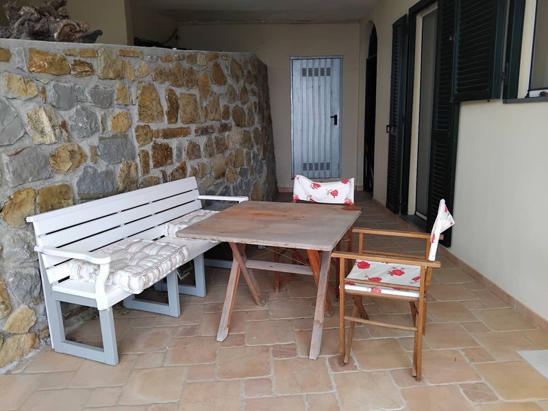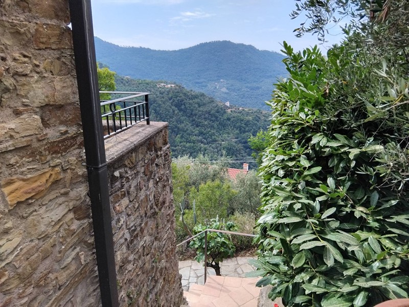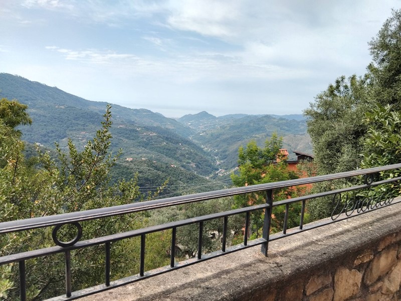 Appartamento in villa con posto auto privato, zona residenziale strada Begliun a Perinaldo, entrata in comune con cancello per due appartamenti opposti, livello piano uno sotto strada, grandissimo seminterrato dietro la proprietà ad uso cantina o a desiderio, ampio soggiorno con cucina a vista con isola con tutta parete finestrata sulla grande terrazza con vista mare, la terrazza prende tre lati dell'appartamento, con vari spazi per godersi il sole o un pò di ombra nei momenti più caldi, le scale esterne portano ad uno studio indipendente con balcone, esterno in pietra e vista mare, intorno troviamo pezzi di giardino e un'altra cantina alta completamente in pietra e a volta sotto lo studio.