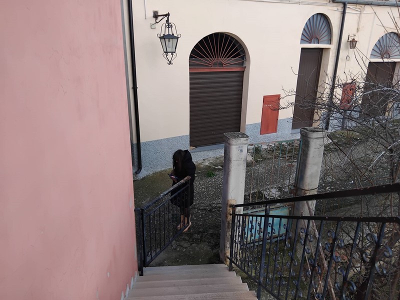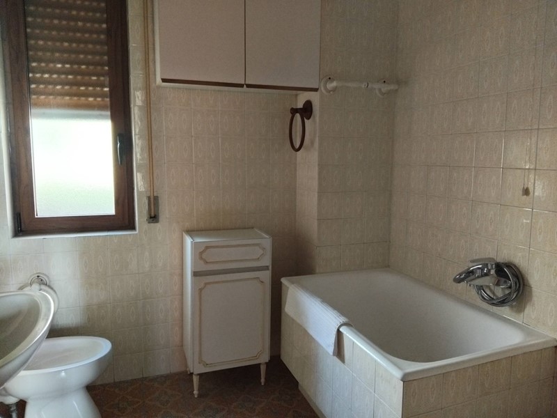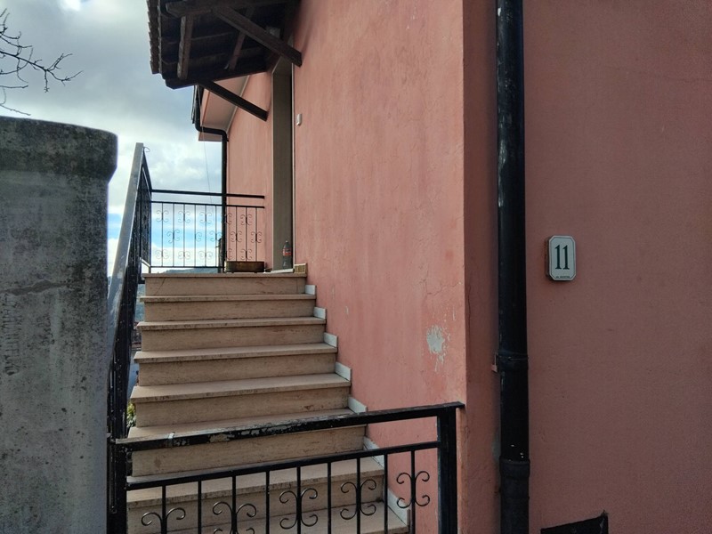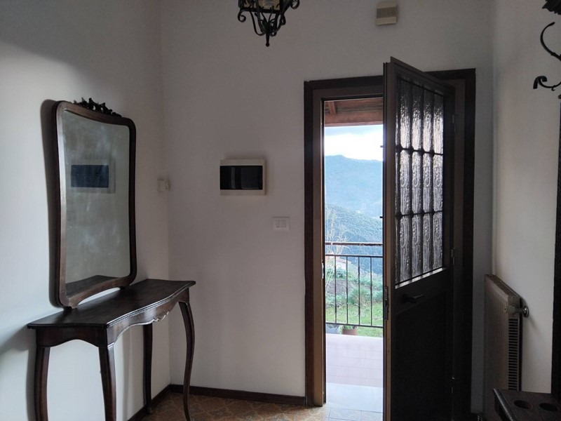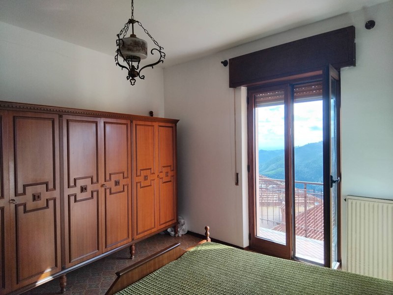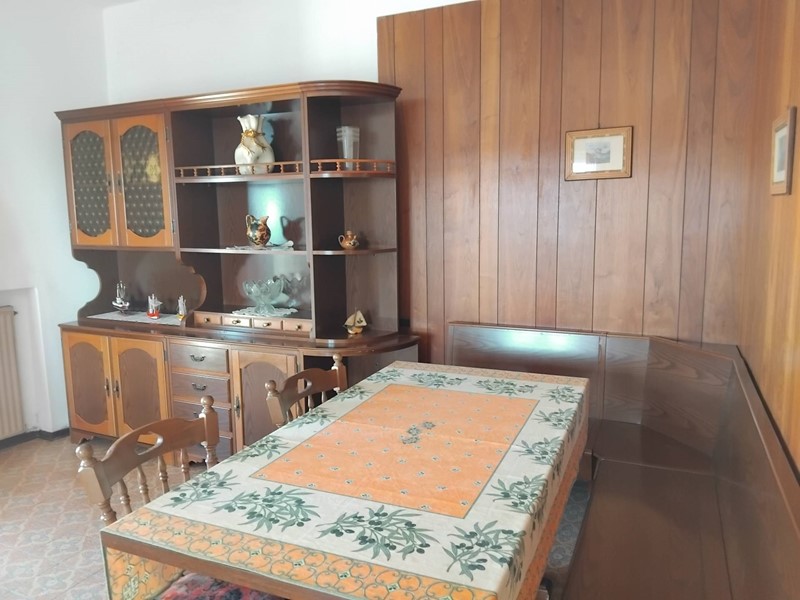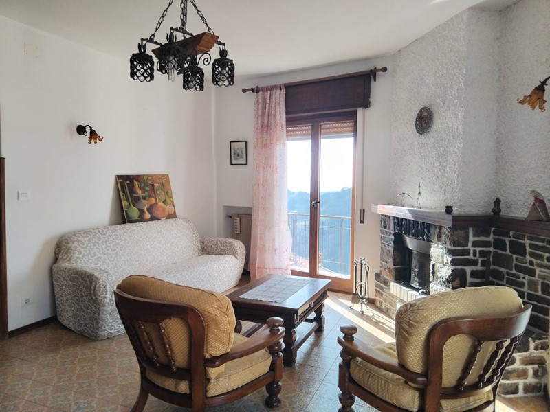 Appartamento su un livello, piano rialzato, ingresso indipendente, balcone che circonda gran parte dell'appartamento, esposizione sud/ovest, vista mare e monti, anni 60, corridoio centrale , 2 grandi camere da letto, grande soggiorno con caminetto, cucina separata, bagno e ripostiglio spazioso, tutte le stanze con finestra. Entrata con scala e balconcino vista monti e mare, in paese, vicino ai servizi. Riscaldamento con caldaia a gas.