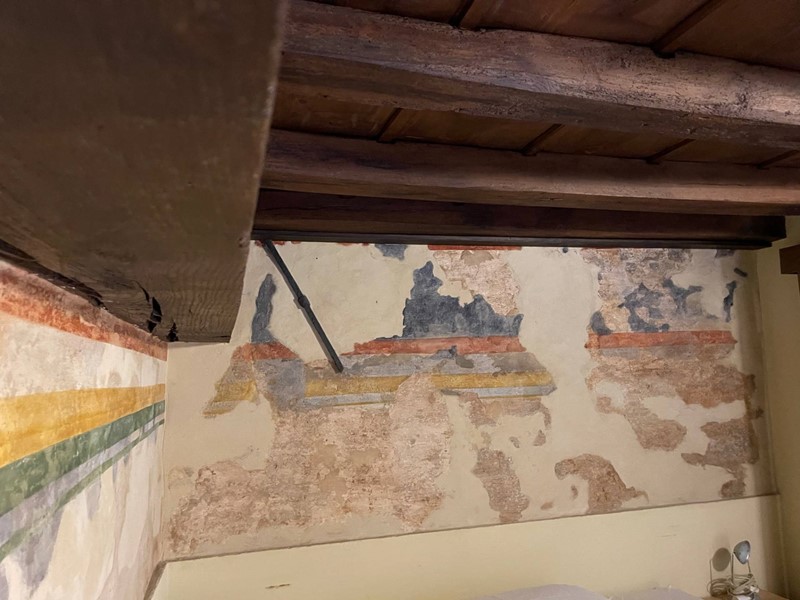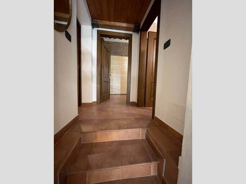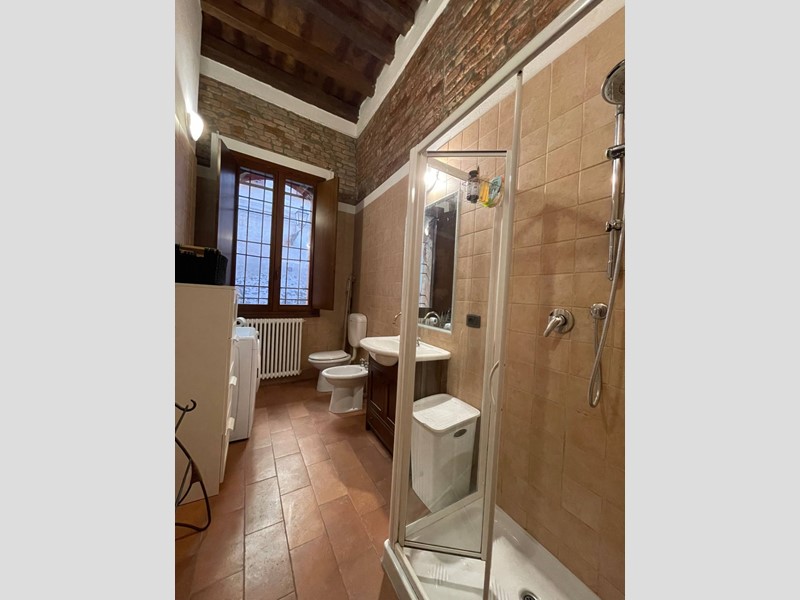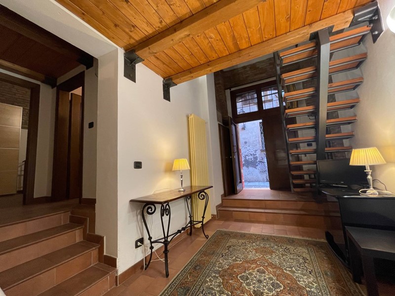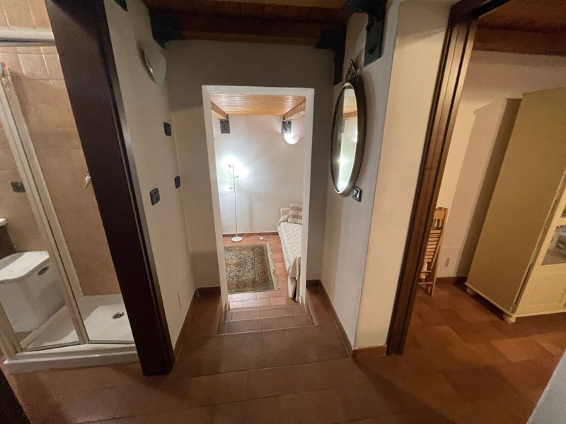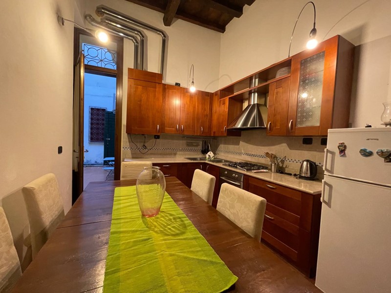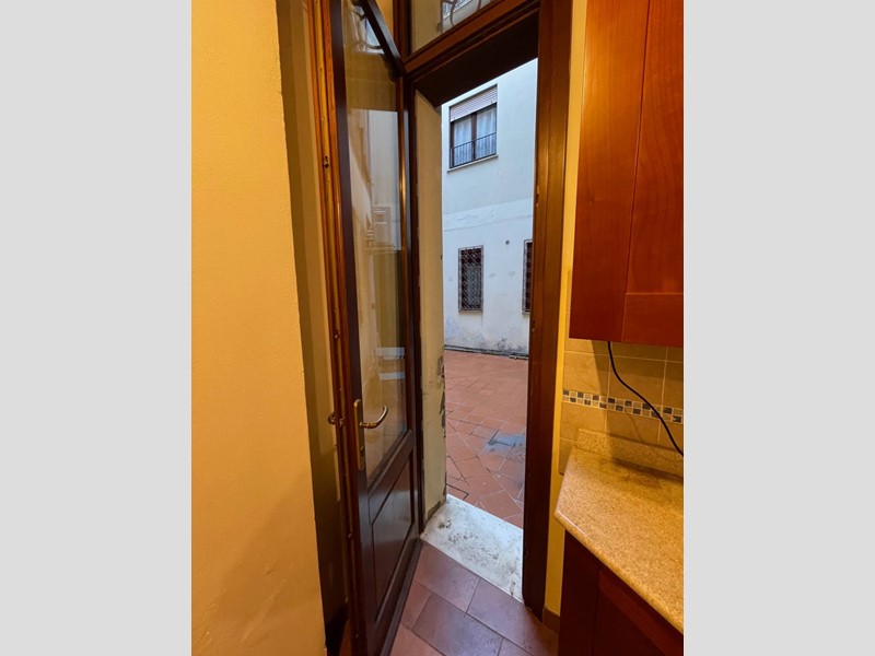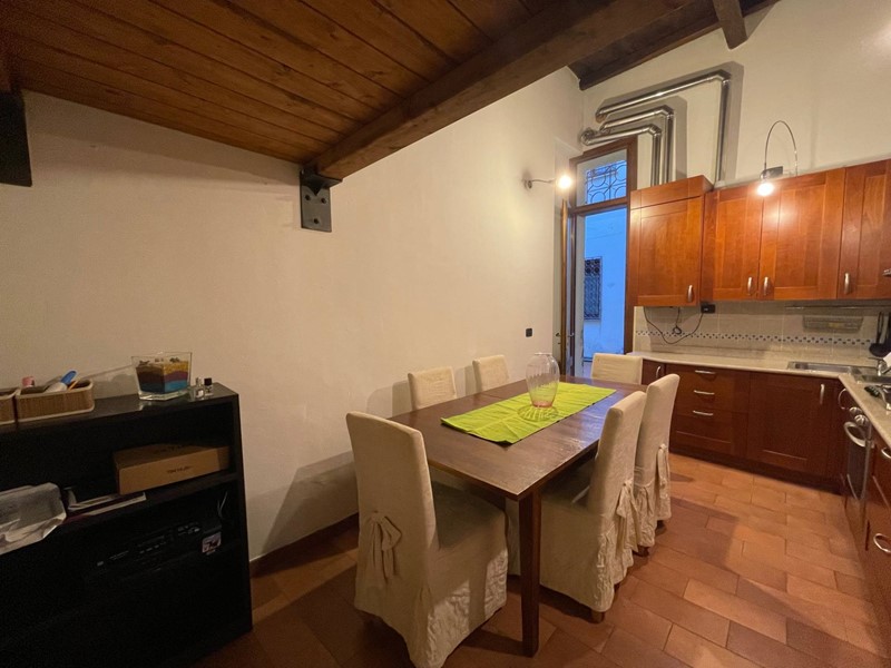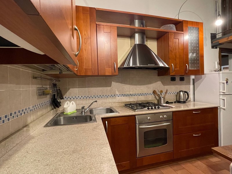 Attualmente disposto con: ingresso su salotto, disimpegno, grande cucina abitabile con uscita sul chiostro interno, ampia camera da letto matrimoniale, bagno finestrato con doccia. Soppalco sopra la zona salotto che funge da studio o eventuale seconda camera da letto e soppalco attiguo con affaccio sopra la cucina. Immobile Soggetto a vincolo storico artistico. Infissi in legno, riscaldamento autonomo. Dotato di Arredo cucina.