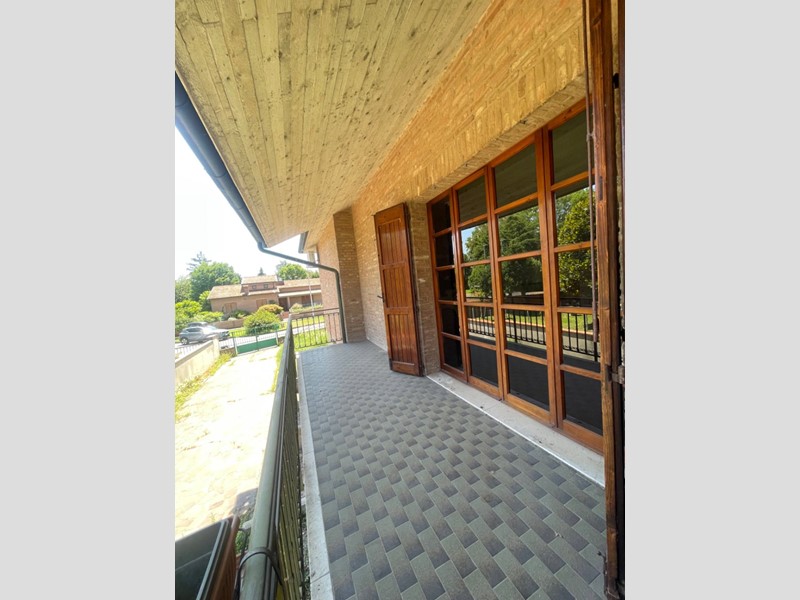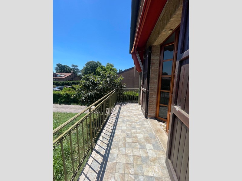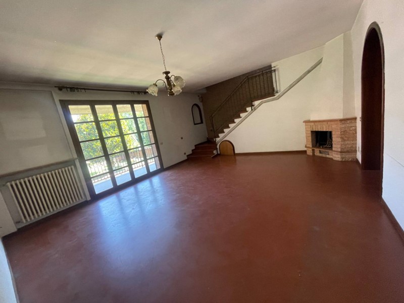 Al piano rialzato si sviluppa la zona giorno, composta da grande salone con camino e terrazzo ideale per godersi momenti di relax e di convivialità all'aperto, cucina con zona pranzo dotata di ampio balcone, un bagno finestrato e un ripostiglio.