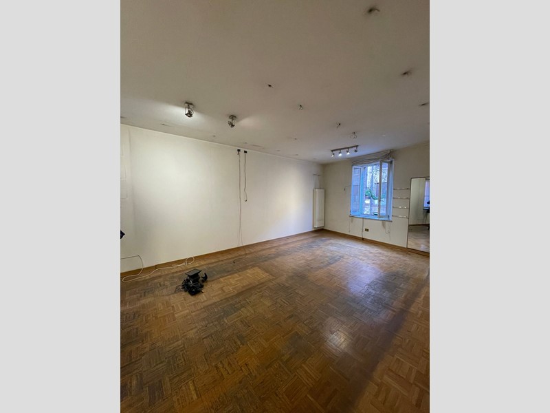 Disposto su due livelli con ampia vetrina su strada, il negozio al piano terra si compone di un vano con servizio e due vani al piano superiore.