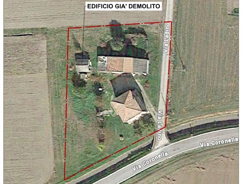 Terreno con progetto approvato in vendita a Coronnella, Ferrara. A pochi passi dal paese, vendiamo terreno con fabbricato originario già demolito e magazzino di circa 160 mq.