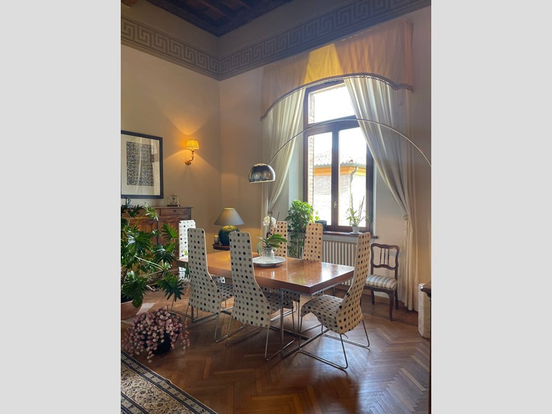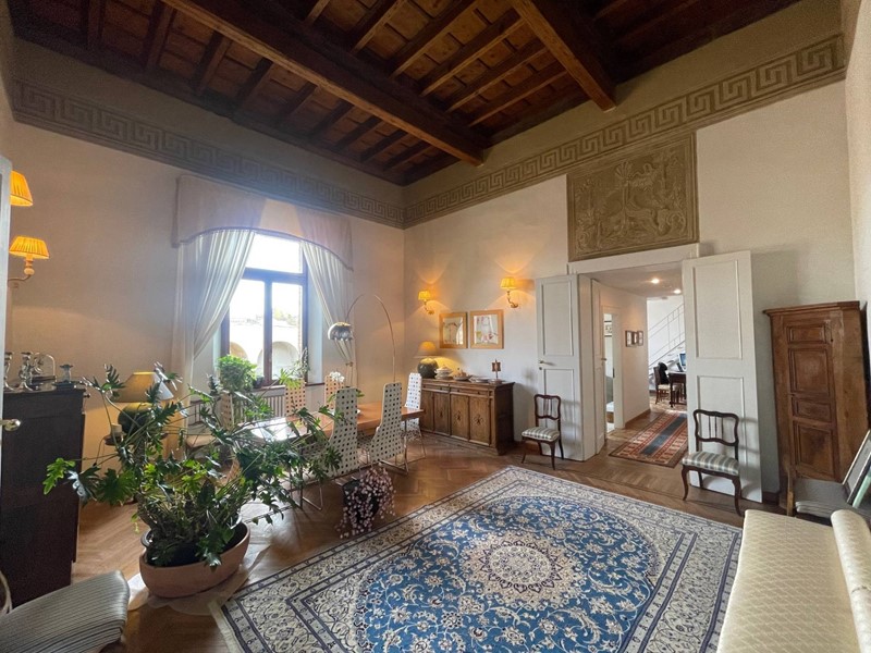 Situato al piano nobile, dotato di doppio ingresso di cui uno servito da ascensore, impreziosito dall' affaccio su un tranquillo giardino condominiale. Disposto prevalentemente su unico livello con soffitti affrescati e solai lignei decorati, lappartamento si compone di: