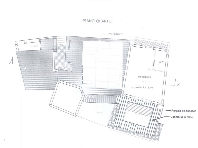 Il piano 4° composto da: ingresso, cucina a vista, bagno e camera da letto matrimoniale.