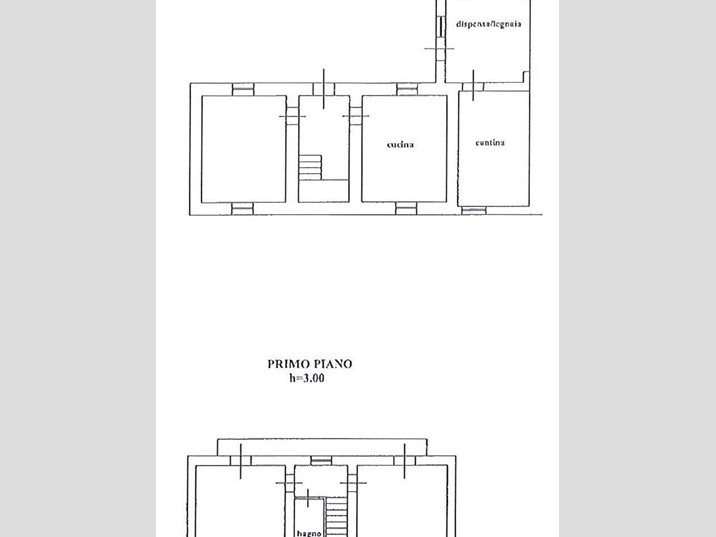 Composta da: al piano terra ingresso, cucina abitabile con camino e soggiorno; al piano 1° due camere da letto matrimoniali con balcone e bagno con vasca.