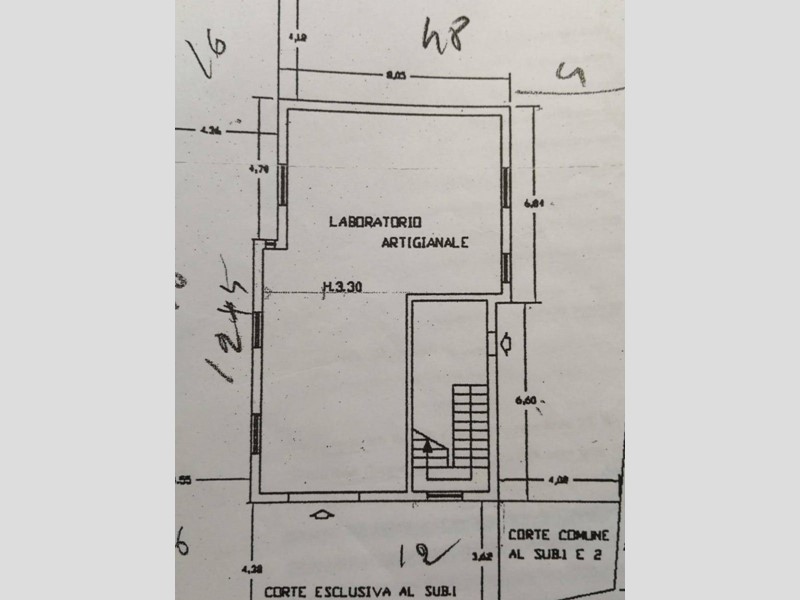 Villa Raspa via Parigi laboratorio artigianale uso deposito accatastato C/3 di mq.90 c.a. altezza mt.3,3 unico locale con piccola corte per parcheggio. Nessuna spesa condominiale.
