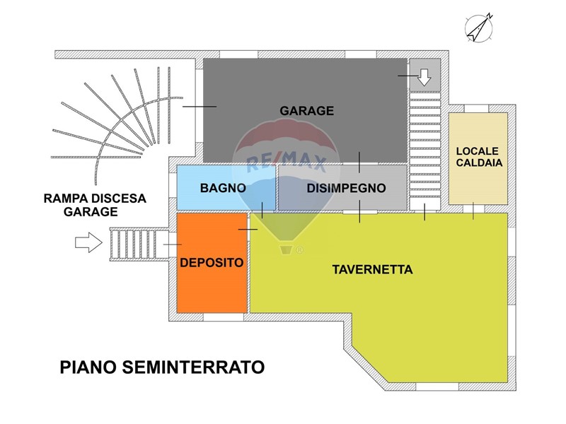 Completa la proprietà il piano seminterrato, accessibile sia dal cortile che dall'interno della villa, composto da ampia zona living adibita a tavernetta con camino, piccola camera deposito, bagno, disimpegno e ampio box auto.