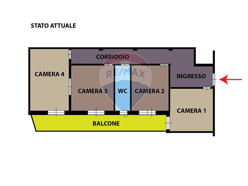 Si presenta in buone condizioni, ha una superficie totale di 115 metri quadrati, di cui 105 calpestabili interni, ed è composto da: ingresso, sala da pranzo, cucina, due camere da letto e bagno. Inoltre, la presenza di un' ampia balconata offre la possibilità di godere di un piacevole spazio all'aperto.