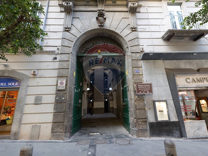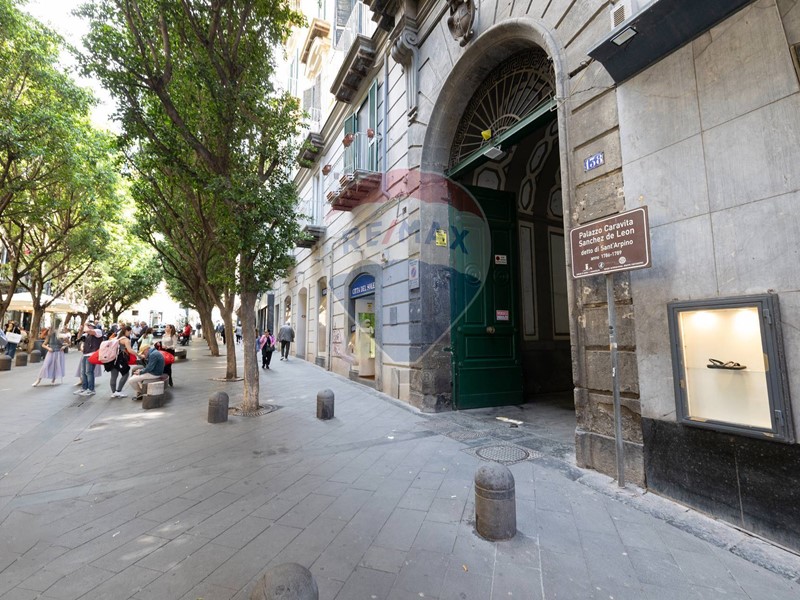 Vendita esclusiva di un prestigioso appartamento nella centralissima zona di Chiaia, nel cuore di Napoli, ubicato al quarto piano del "Palazzo Caravita Sanchez de Leon", un bellissimo edificio storico, risalente al 700, con servizio di portierato, ascensore, ed area condominiale esterna adibita a parcheggio.