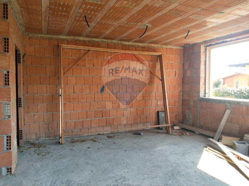 Si percorre il giardino e dal PORTICO si accede al soggiorno di circa 28 mq. , l'ampia cucina da sul portico e sul giardino, nel bagno sono previsti gli attacchi per i 4 sanitari e la scala conduce al primo piano. Nella zona notte, attraversando il corridoio si arriva alla camera da letto matrimoniale , il locale cantina / ripostiglio e il BOX di circa 29.00 mq.