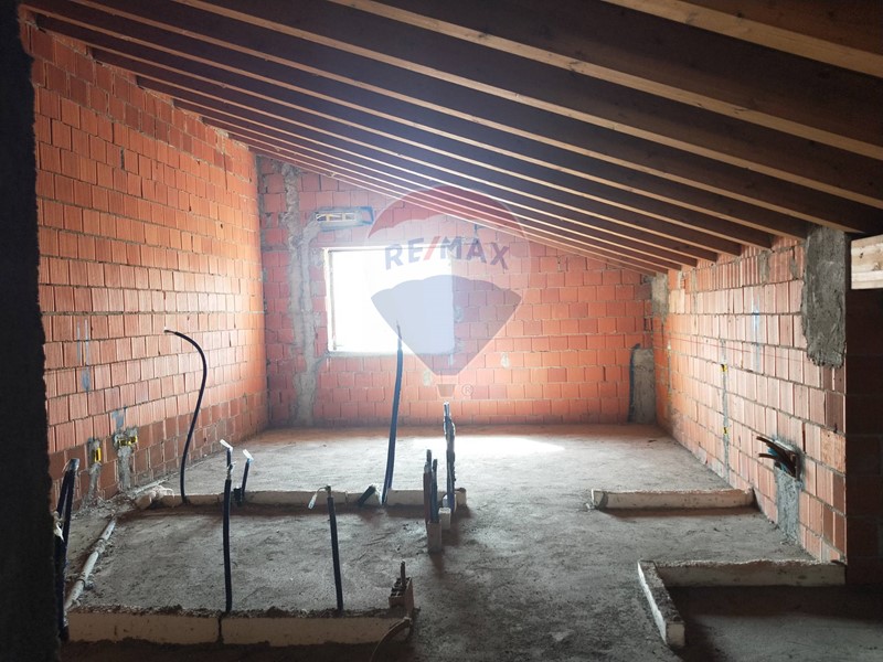 Al primo piano ci attende la camera matrimoniale di circa 18 mq., una cameretta di circa 13,00 mq. con balcone e un bagno con i 4 attacchi sanitari. Sempre dal corridoio comune si accede al sottotetto, finestrato, agibile non abitabile di circa 49 mq.