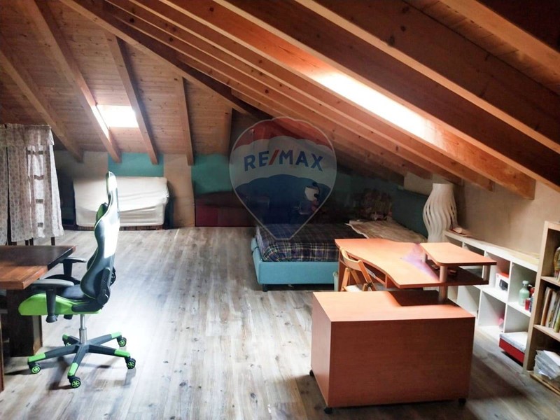 Il sottotetto, grande quanto l'appartamento, ha la copertura a FALDE in LEGNO A VISTA ed IL PARQUET è stato posato sull'intera area.
