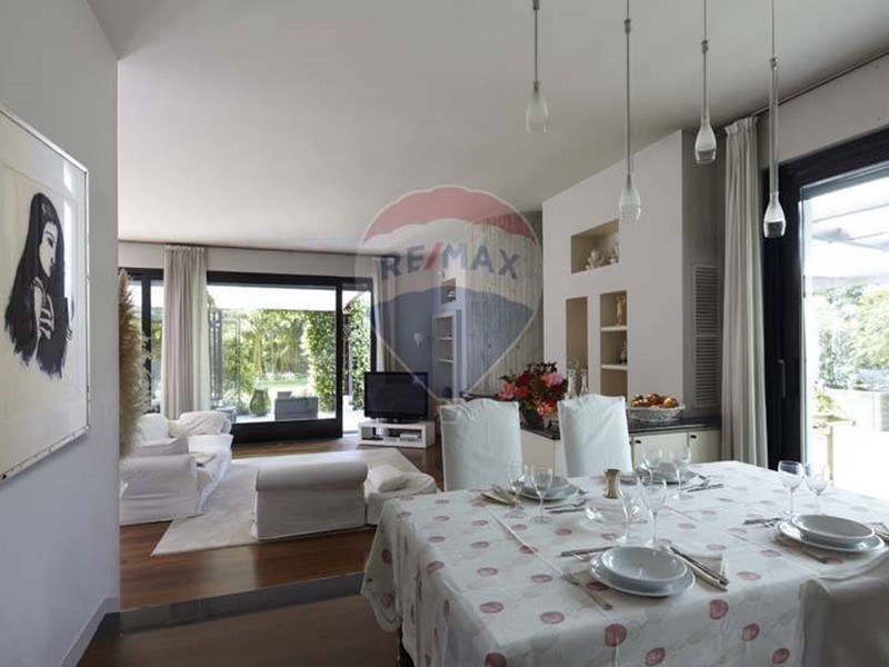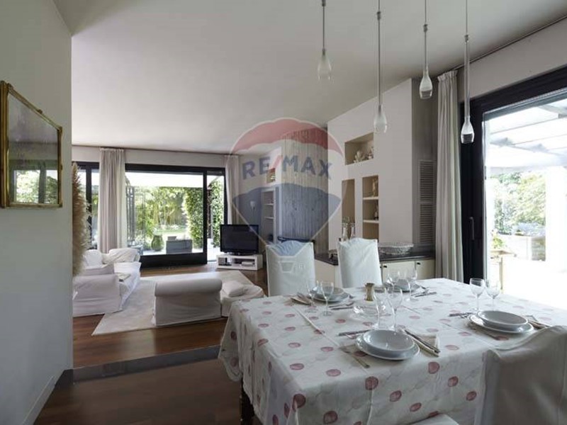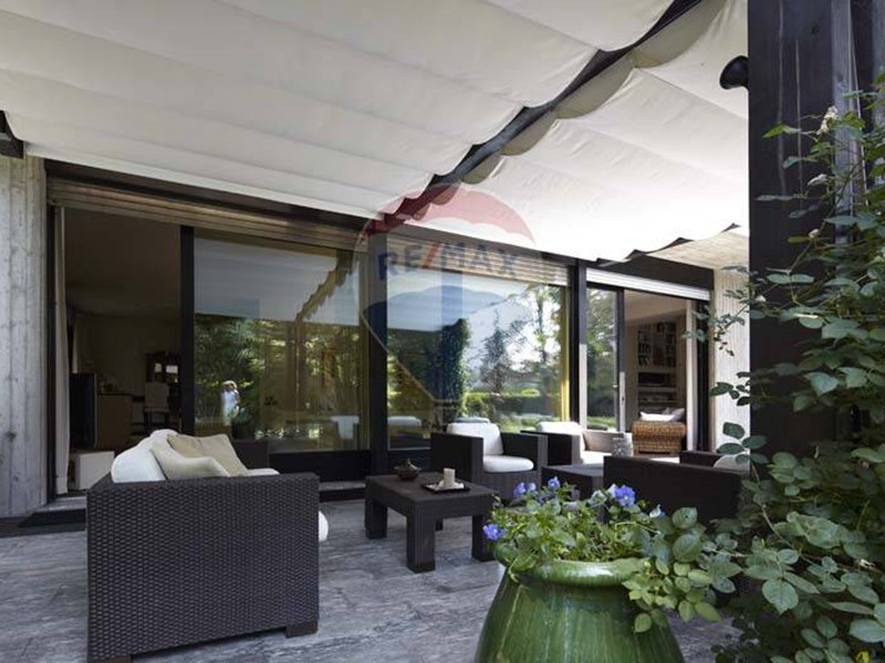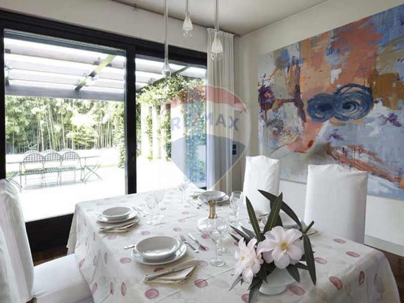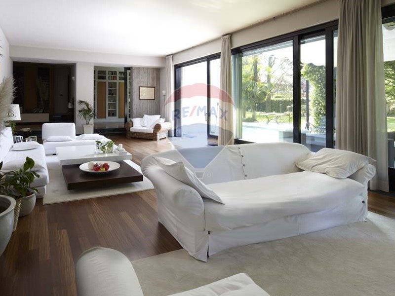 Questa splendida soluzione si estende su una proprietà esclusiva di circa 5.000 mq offrendo una privacy totale e un'atmosfera di serenità. Con una superficie abitativa di circa 300 mq, la villa è progettata per garantire il massimo confort e un'elegante qualità della vita, gli spazi sono ben distribuiti su un unico livello abitativo e con una taverna adibita a palestra, zona hobby e lavanderia. L'ingresso accogliente conduce a un ampio e luminoso soggiorno caratterizzato da grandi vetrate a tutta altezza che si affacciano direttamente sulla meravigliosa piscina e sul giardino dove un elegante dehor crea un ambiente perfetto per rilassarsi ed intrattenere gli ospiti. Il soggiorno, spazioso e raffinato, è il cuore della casa ideale per momenti in famiglia e di convivialità. L'ampia cucina abitabile è caratterizzata da vetrate a soffitto e da una rilassante vista sul giardino. Completa la zona giorno una sala da pranzo arricchita da un secondo dehor ideale per colazioni, pranzi e cena all'aperto. Adiacente al soggiorno troviamo un locale adibito a studio con affaccio sulla piscina. La zona notte è caratterizzata da una master room con bagno en suite con vasca idromassaggio, doccia e due cabine armadio. Due ulteriori camere con bagno completano la zona notte. Tramite una particolare scala si accede alla taverna di circa 300 mq da utilizzare a seconda delle necessità della famiglia. Accesso diretto al box adatto ad ospitare tre autovetture. La villa unica nel suo genere è resa luminosa dalla vetrate a tutta altezza. La posizione della piscina a sud- ovest e la rigogliosa siepe che garantisce la massima riservatezza rappresentano un plus