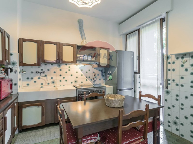 La cucina abitabile e la zona giorno spaziosa e luminosa offrono accesso diretto al balcone con affaccio sul silenzioso parco condominiale.