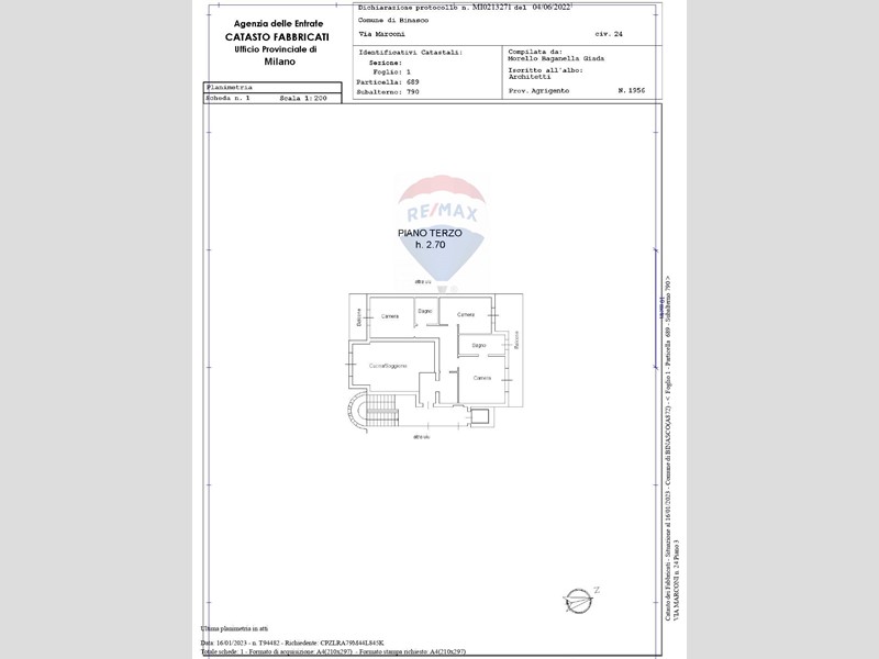L'immobile si trova al 3° piano servito da ascensore, si apre su un ampio e luminoso soggiorno con cucina a vista, caratterizzato da una doppia finestra che garantisce un'eccellente luminosità naturale. Un comodo disimpegno conduce alla zona notte, composta da una spaziosa camera matrimoniale con bagno padronale finestrato con vasca ed accesso ad un balcone privato, due ulteriori camere da letto entrambe con balcone ed un secondo bagno cieco con doccia ed impianto di ventilazione forzata.
