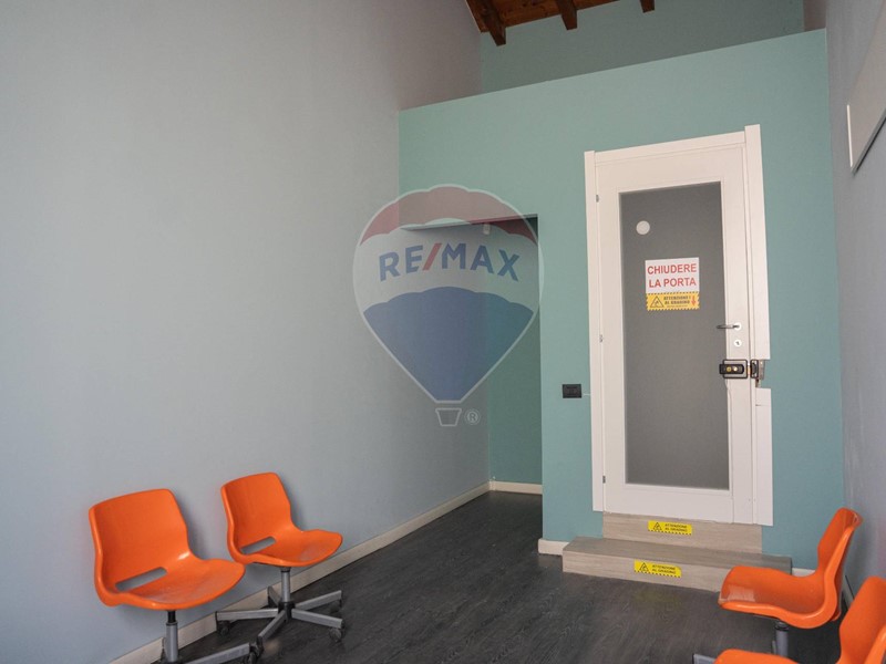 Ingresso, sala d'attesa, ampio studio, vano con finestra, disimpegno, antibagno, bagno, locale ripostiglio.
