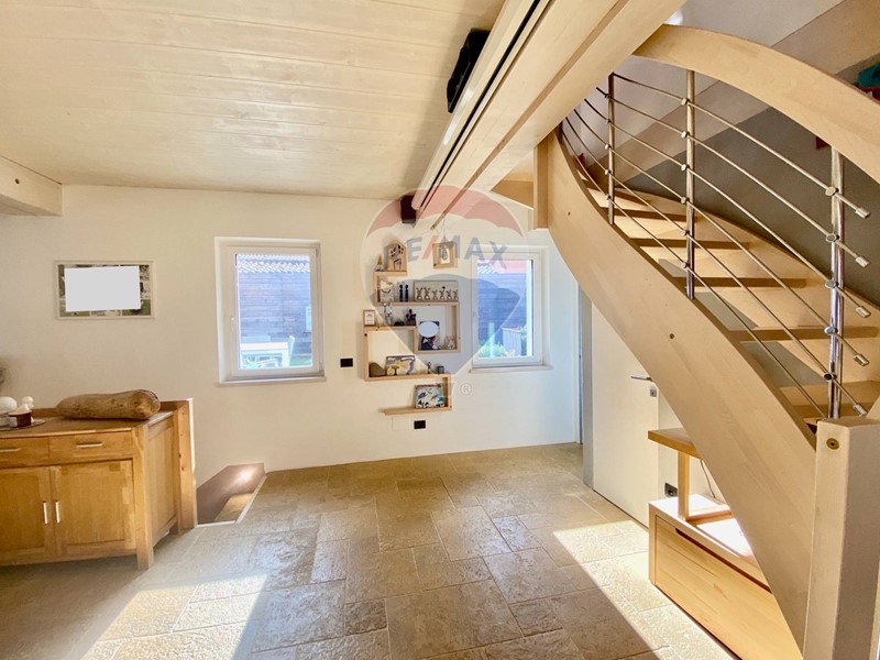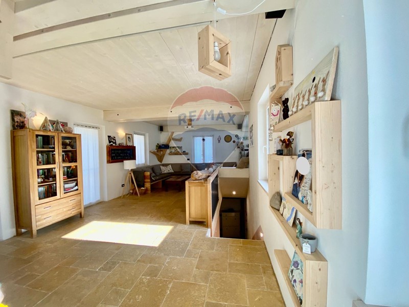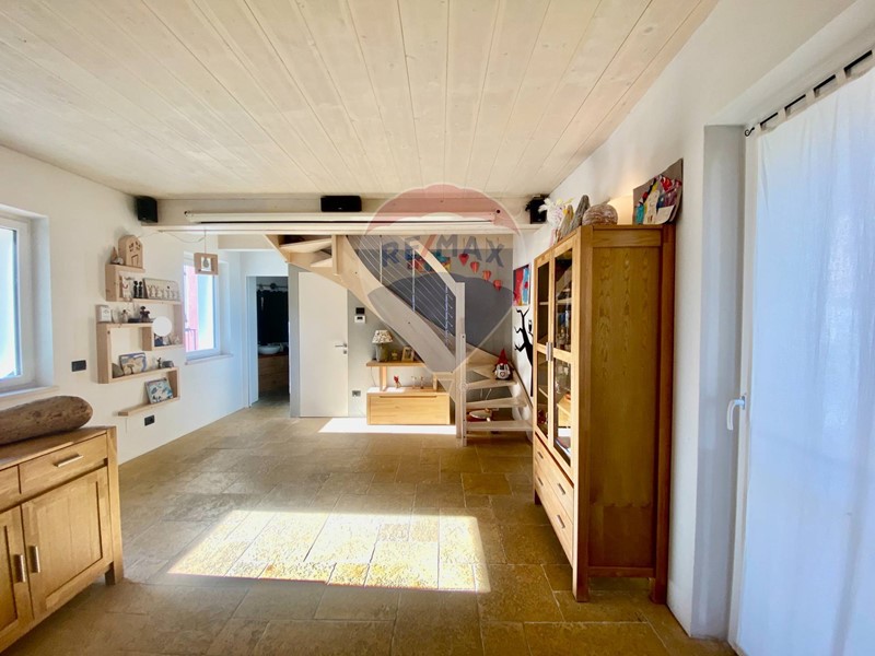 Dallingresso principale a piano terra, si accede ad un locale adibito a palestra con ripostiglio e locale tecnico. Attraverso la scala in bellissima pietra naturale, si accede a piano primo, composto da ampio soggiorno e bellissima cucina a vista con vetrata e accesso diretto alla porzione di giardino pensile. Un particolare molto affascinante che da valore aggiunto allintero complesso immobiliare.