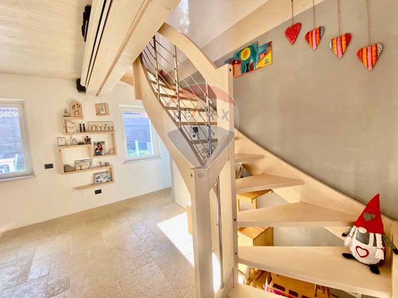 Dal soggiorno, attraverso una bellissima scala in legno, si accede al secondo piano con tetto a vista, composta da due grandi camere matrimoniali di dimensioni extra e bagno padronale.