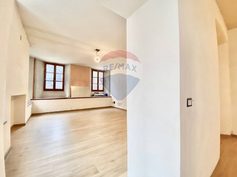 Lappartamento, frutto di una ristrutturazione raffinata, si sviluppa su due livelli: al piano terra troviamo un accogliente soggiorno con un'antica armadiatura a nicchia, una cucina con accesso alla corte interna in comune, un elegante bagno completo di doccia walk-in, una camera da letto che si apre su un pratico locale ripostiglio-lavanderia e il vano scala che collega al piano primo. Qui si trova la seconda camera da letto, dotata di bagno privato, anch'esso con doccia walk-in. Questa camera, con un secondo accesso indipendente dal cortile, rappresenta la soluzione ideale per ospiti o per famiglie con figli adulti, garantendo loro la giusta privacy. L'immobile è dotato di riscaldamento a pavimento suddiviso per piano, e i serramenti in legno con vetro doppio preservano il carattere storico del centro. La ristrutturazione è stata completa. Presenta finiture moderne mixate ad elementi originali che esaltano il fascino di questo alloggio. Completano la proprietà una cantina con accesso diretto dal retro e una corte esclusiva di circa 15-18 mq.
