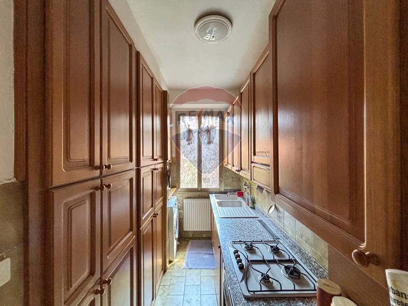 L'appartamento è cosi composto: ingresso su ampio disimpegno con balcone, cucinotto, soggiorno, 2 ampie camere e bagno con balcone. Il riscaldamento è autonomo con termosifoni e non ci sono spese condominiali. L'ottimale disposizione dei locali, con la cucina e il soggiorno a est e sud, rende l'appartamento molto luminoso.