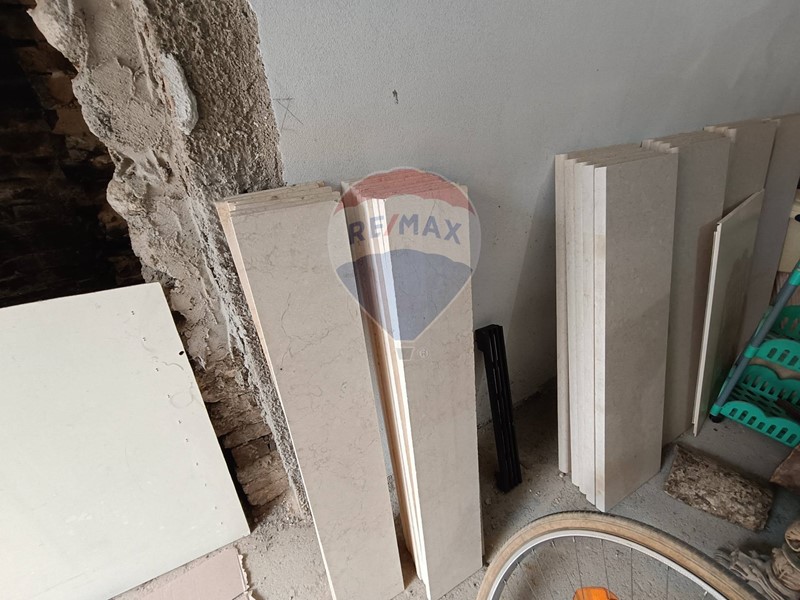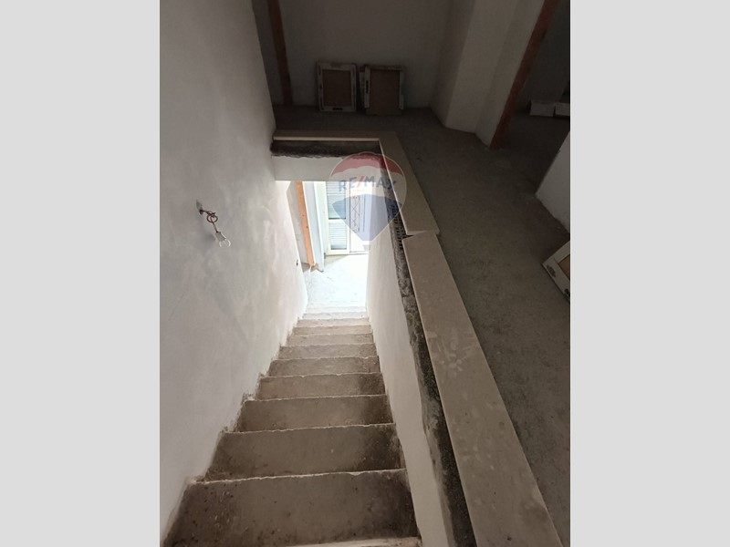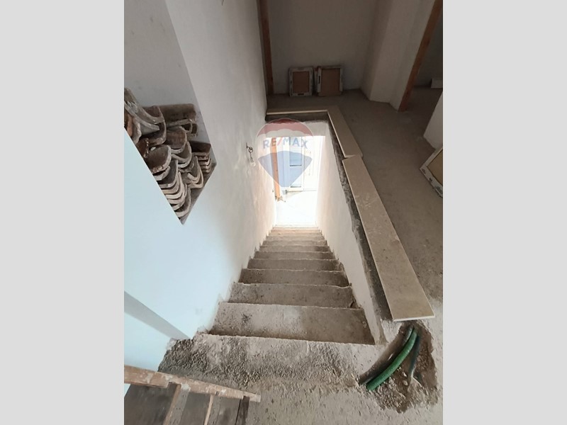 La scala che porta al piano superiore è allo stato grezzo e manca la pavimentazione. Il materiale per la pavimentazione e il rivestimento della scala in marmo sono già stati acquistati; manca solo la posa in opera.
