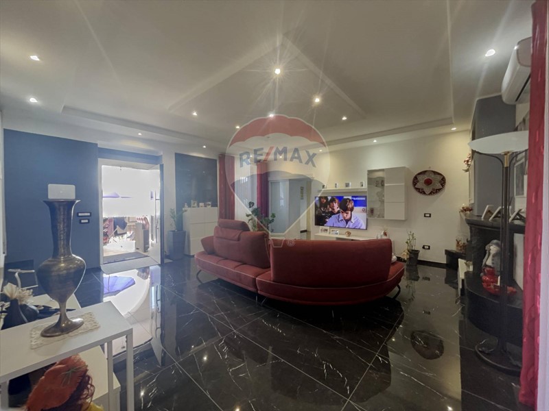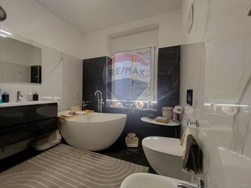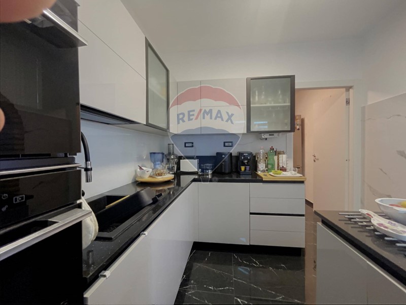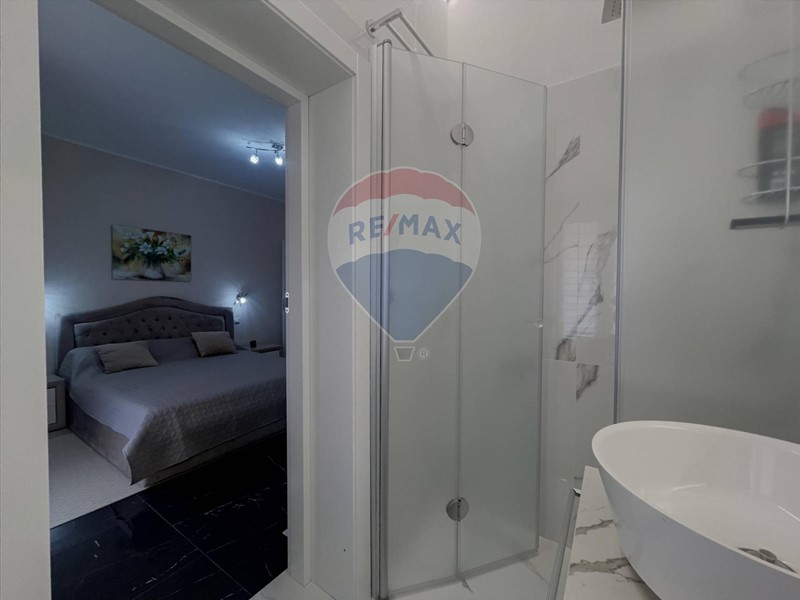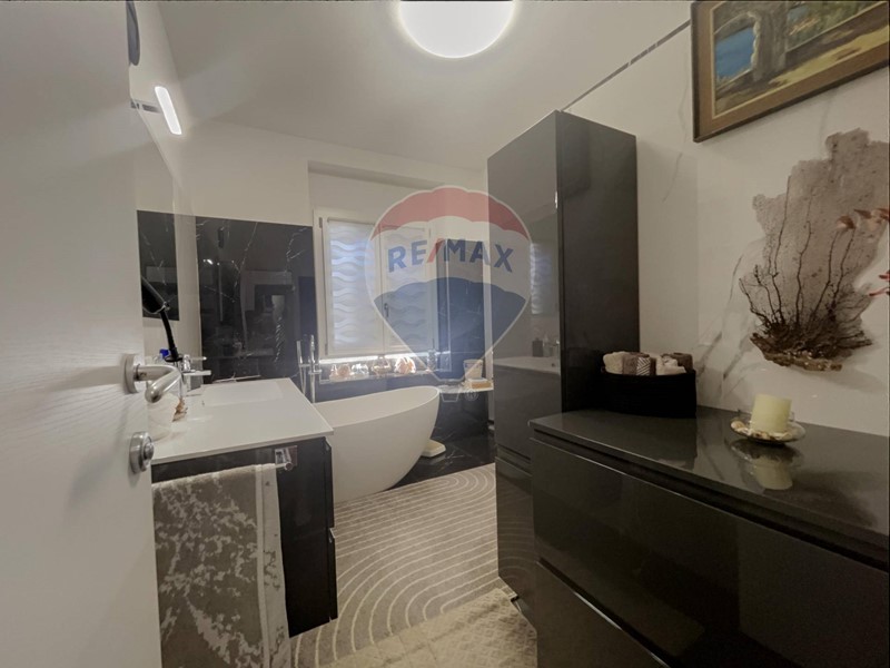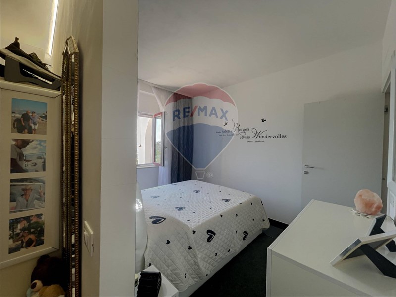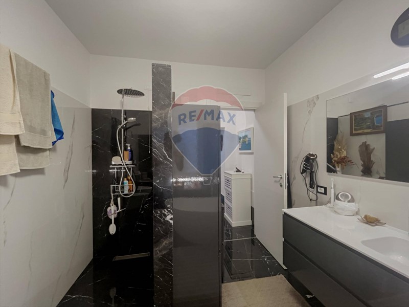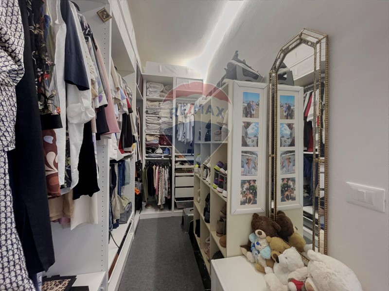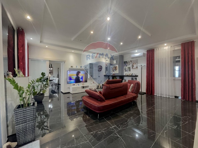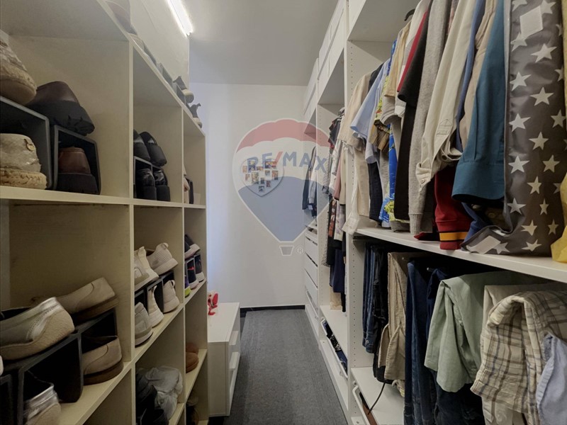 Composizione: Piano terra, doppio ingresso con grande soggiorno e camino di design, sala da pranzo, cucina abitabile, tinello con dispensa e cantina, corridoio con accesso alla sala da bagno con vasca e doccia, camera da letto principale con cabina armadio; al Piano superiore si accede da una lussuosa scala con generoso disimpegno per altre tre camere da letto, studio ed altro bagno; da ogni stanza si accede ai due terrazzi VISTA MARE collegati da un altro grande balcone da cui si gode la vista della vallata e del mare a 180°; completano la proprietà un giardino, un terreno esclusivo con possibilità di realizzare una piscina ed un altro fabbricato, forno pizza/pane e tutta una copertura circostante l'immobile attualmente utilizzato con rimessa, deposito, magazzino e parcheggio camper.
