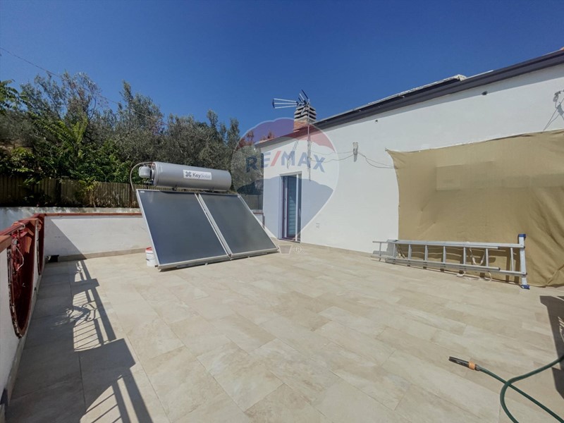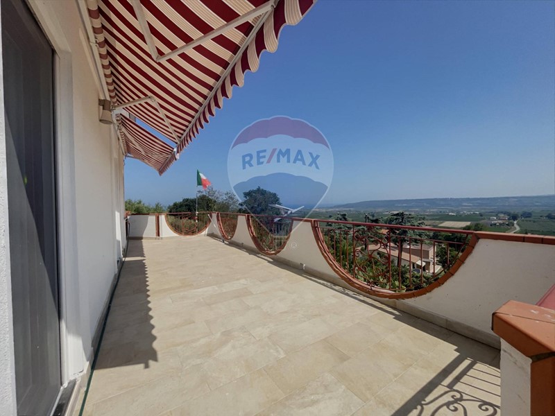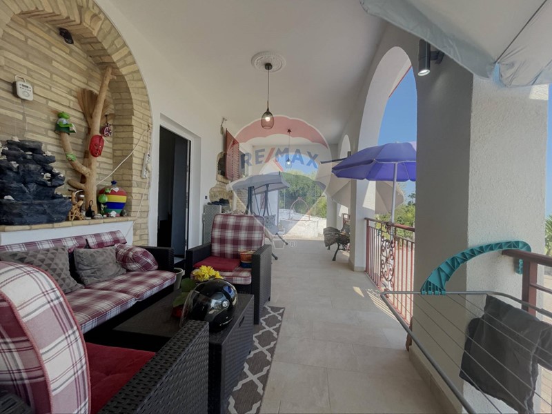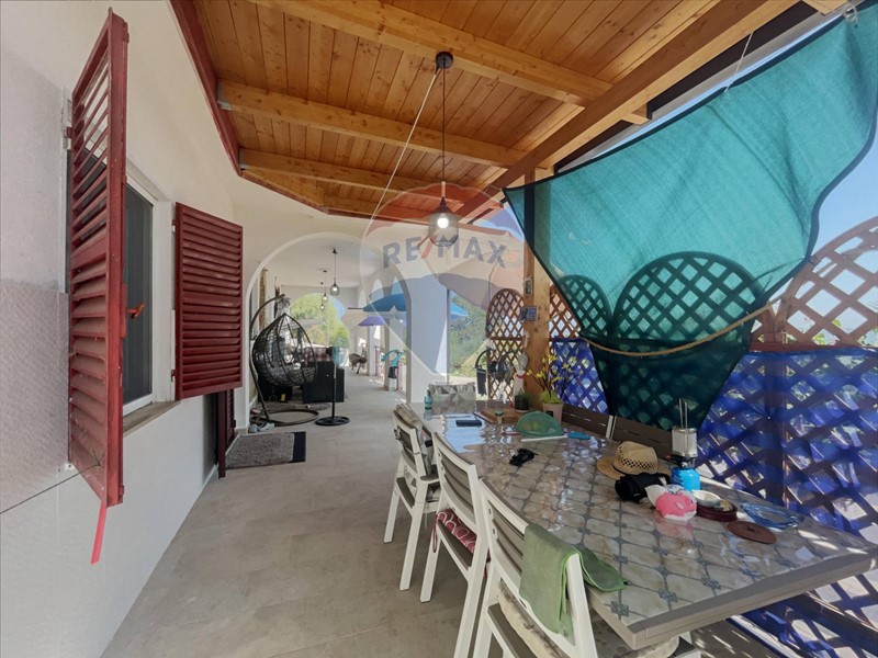 VILLA RISTRUTTURATA, esclusiva, con materiali di pregio, per intenditori poco distante dal centro del paese, si eleva su di un colle per permettere la meravigliosa vista dove il cielo incontra il mare, adatta a molteplici usi grazie anche allo spazio circostante esclusivo di cui gode l'immobile, con circa 3.000 mq di terreno e corte, alberi da frutto, pozzo artesiano e nuovi pannelli fotovoltaici.