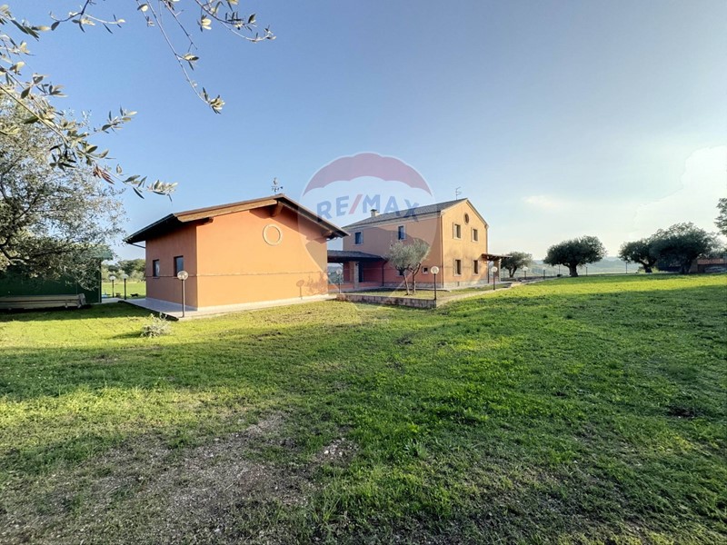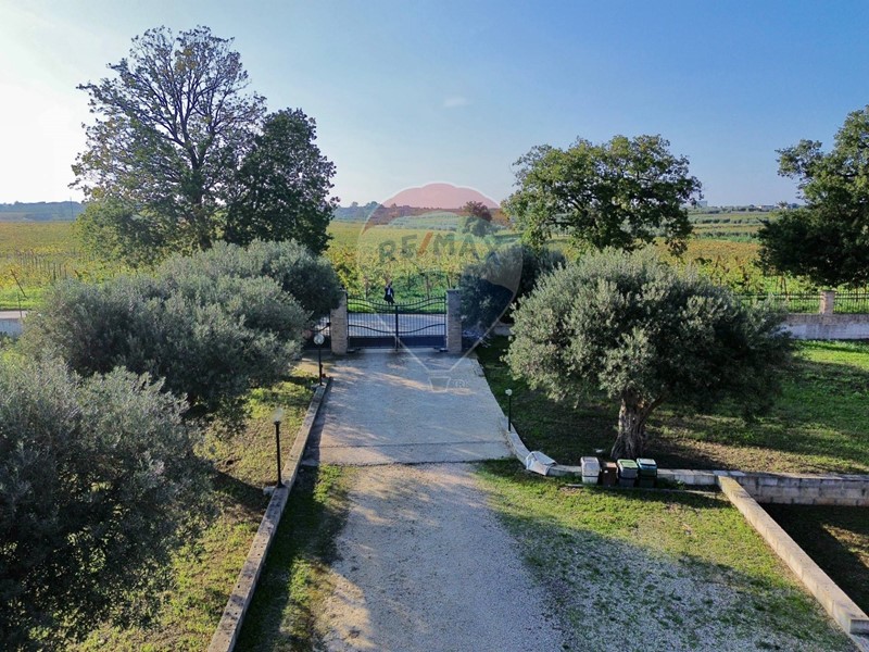 Si tratta di un edificio dal forte impatto visivo ed emozionale, una proprietà che gode di 20.000 Mq di terreno, in gran parte recintato con muretto, dove sorge un laghetto artificiale, di fianco si scorge un fitto uliveto con circa settanta alberi.