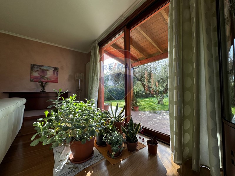Tutti gli ambienti si affacciano con luminose vetrate sul giardino circostante.