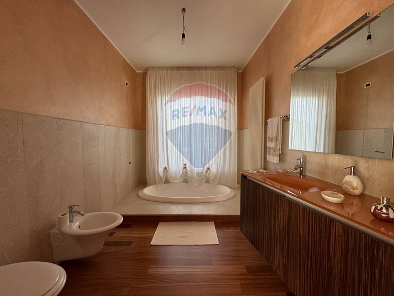 Un elegante ingresso conduce ad un ampio e luminoso open space , qui un bellissimo termo-camino divide il salone in due ambienti, completa la zona giorno una spaziosa cucina. La zona notte presenta due eleganti bagni con vasca incassata a pavimento e doccia, un locale ad uso lavanderia e tre spaziosissime camere da letto.