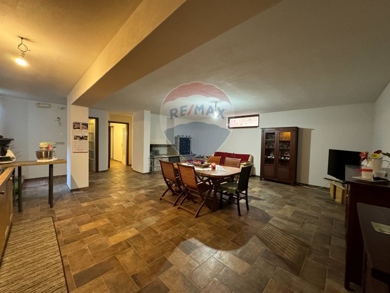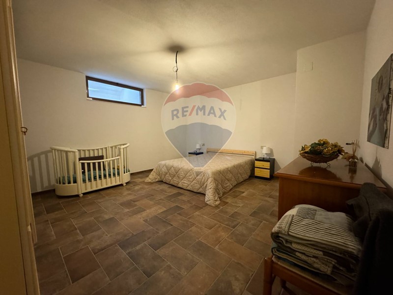 Una seconda scala interna in muratura conduce al piano interrato nel quale è stato ricavato un ambiente adibito a taverna con camino e forno a legna, camera, bagno e un ampio garage.