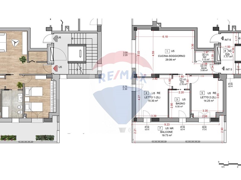 - Attico 72mq, 1 camera, 1 bagno, 2 balconi