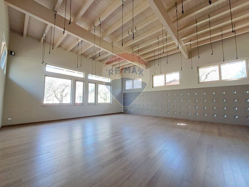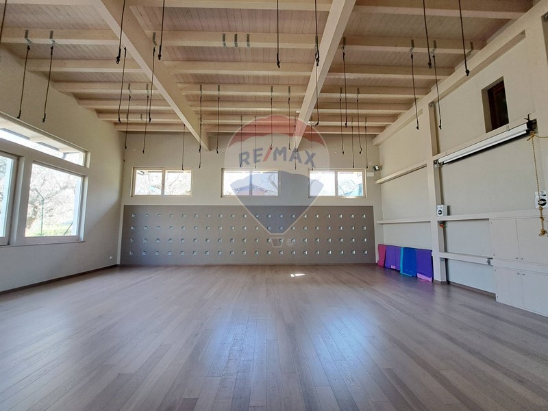 L'ampia e luminosa sala permette di svolgere lo yoga in volo, ha il riscaldamento a pavimento, parquet e ampie finestre.