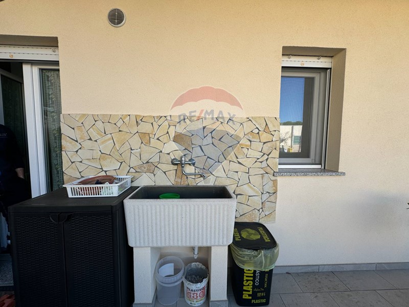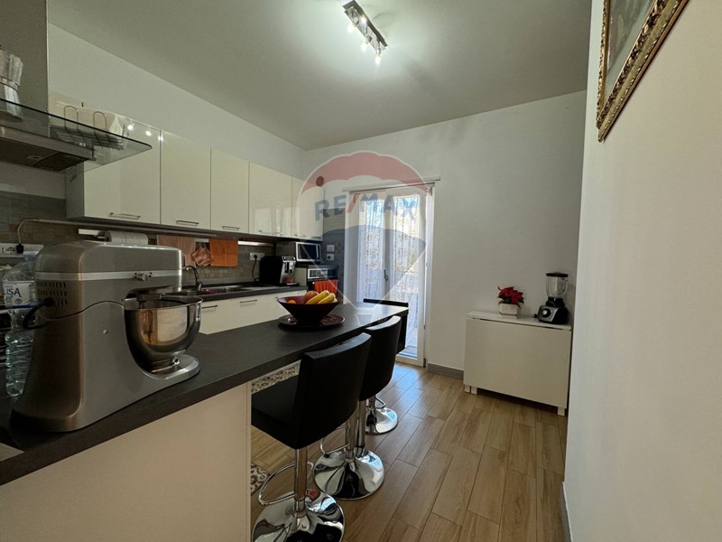 La cucina, separata dal soggiorno, è spaziosa, luminosa e si affaccia su ampia terrazza, dalla zona cucina si accede ad una dispensa e una stanza adibita a lavanderia e wc.