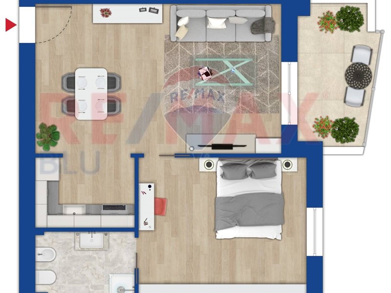 Lappartamento si compone di un soggiorno con cucinotto separato e accesso al balcone, una camera da letto matrimoniale ed un servizio.