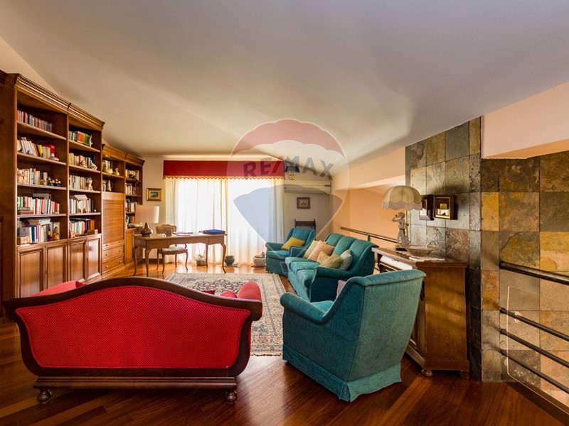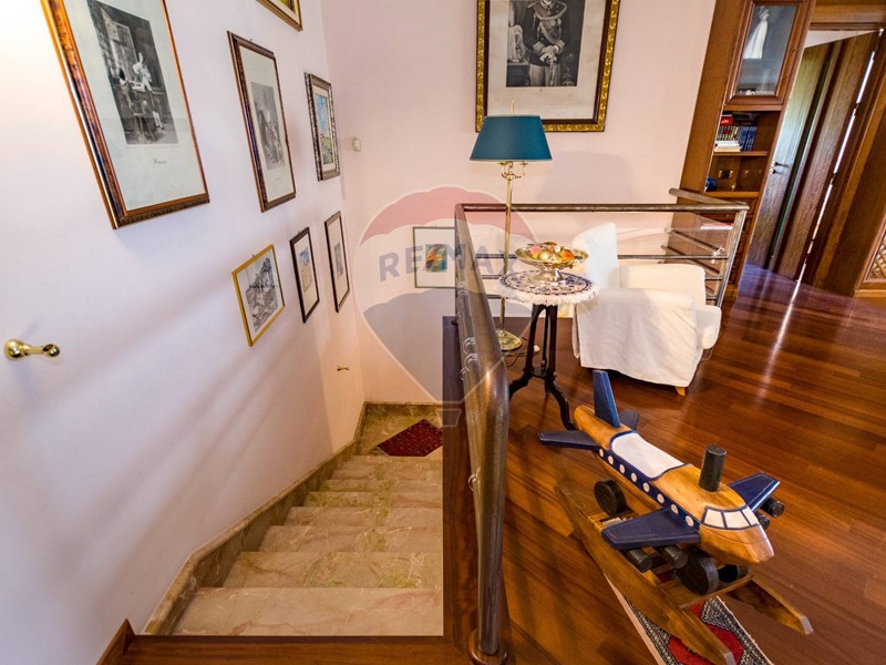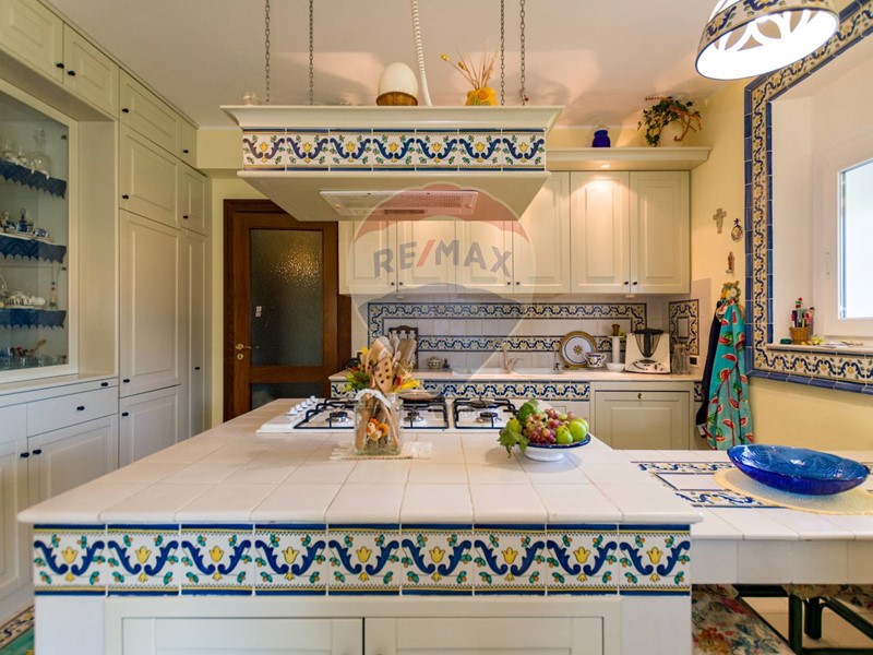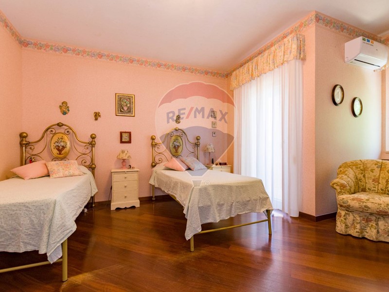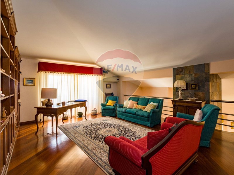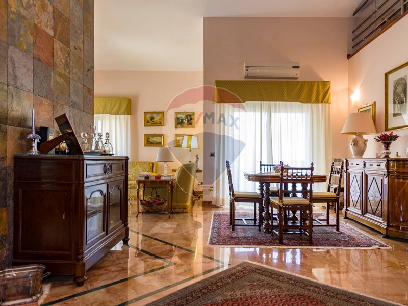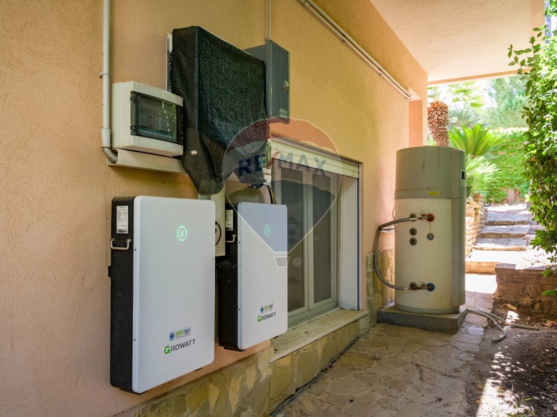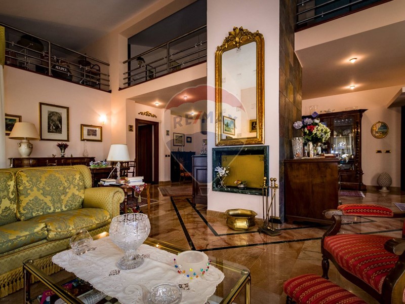 La villa è costituita da un ampio salone , con pavimento composto da diversi marmi pregiati, con camino centrale, l' ambiente è collegato con scale a vista ad un ampio soppalco in parquet di iroko arredato con libreria in legno di rosa, vi è possibilità inoltre di posizionare un tavolo da biliardo . La zona notte , sempre in parquet di iroko , è costituita da due stanze da letto con balconi e due bagni( uno di rappresentanza è rivestito da un mosaico di diversi marmi impreziosita da ampia specchiera) . La cucine , rivestita da piastrelline dipinte a mano , da artigiani di Caltagirone, riproducono un pavimento siciliano del 600. Al piano secondo si trovano ancora altre tre stanze da letto e altri due bagni . I marmi, le porte e le soluzioni di arredo sono originali in quanto curati da un professionista di arredo dinterni. E' stata costruita da un unico proprietario circa 25 anni fa e nel 2022 ha usufruito di unintervento di riqualificazione energetica ( ecobonus 110%) con sostituzione di nuovi infissi a tenuta termica ed acustica, con due impianti di fotovoltaico di 6 kw ciascuno e due colonnine per ricarica di macchine elettriche. Tutti gli ambienti sono riscaldati con termosifoni alimentati da caldaie a basso consumo e da split per laria condizionata. La Villa è circondata da un giardino di 1600 mq , con splendide palme , ulivi , castagni, arance, limoni e numerosi alberi ornamentali. Infine, a completamento di questa proprietà, cè una grande piscina di 12x6 metri, rivestita di mattonelline di mosaico verde e azzurro, con zona fitness coperto di 50 mq e con dependance di 80 mq, climatizzata (cucina , bagno, forno a legna con barbecue e una piccola stanza per ospiti). Tutta la proprietà è circondata da alte mura che ne consentono la massima privacy e sicurezza.