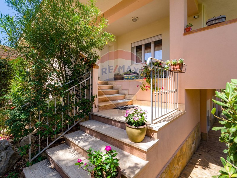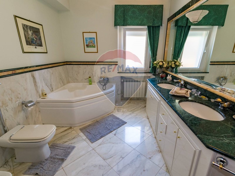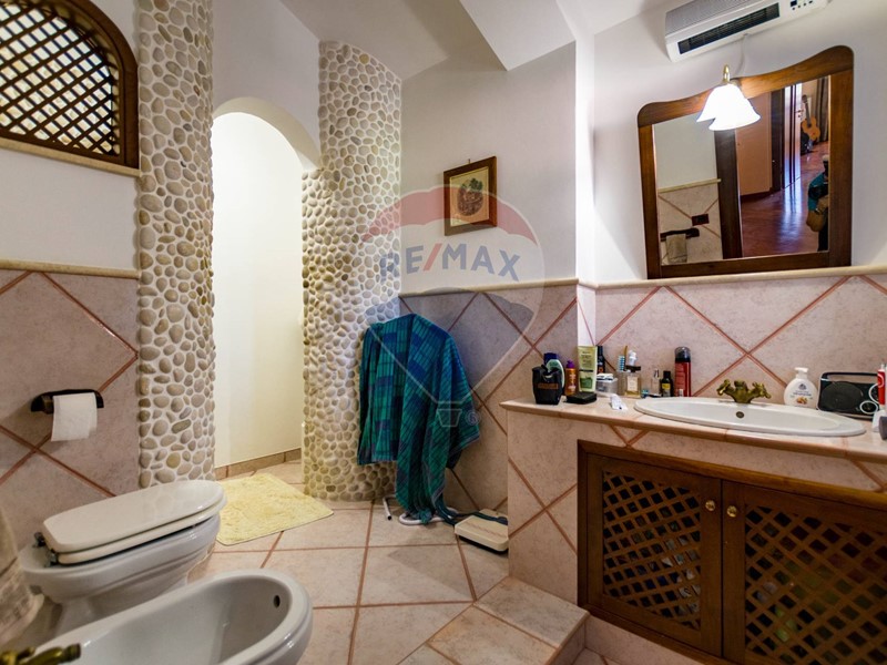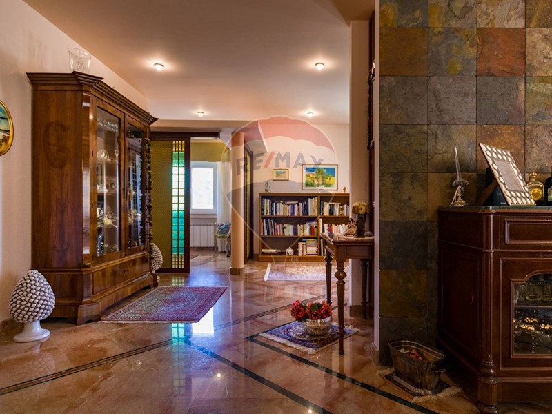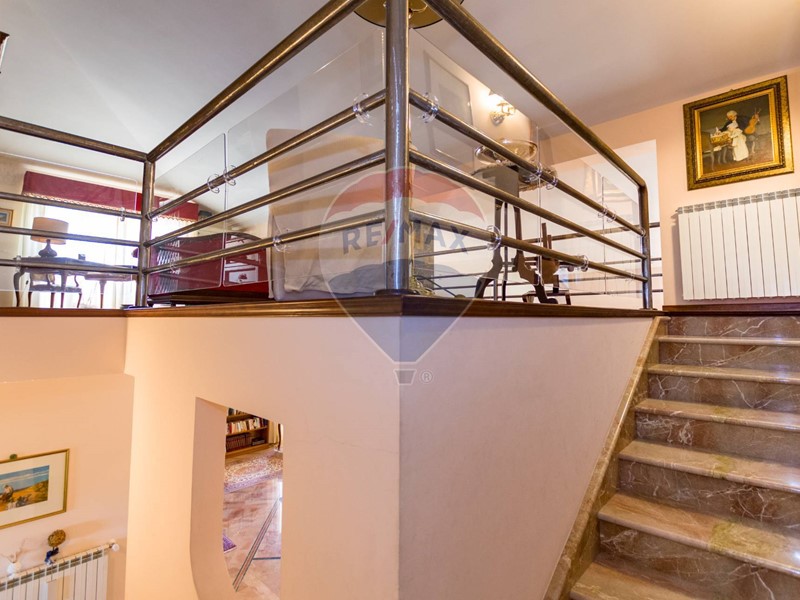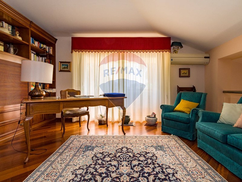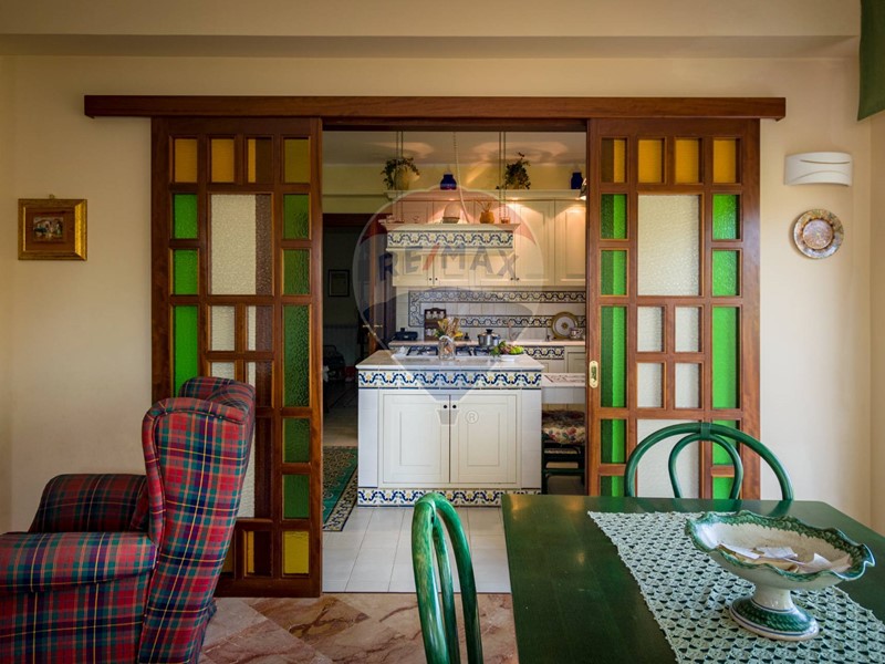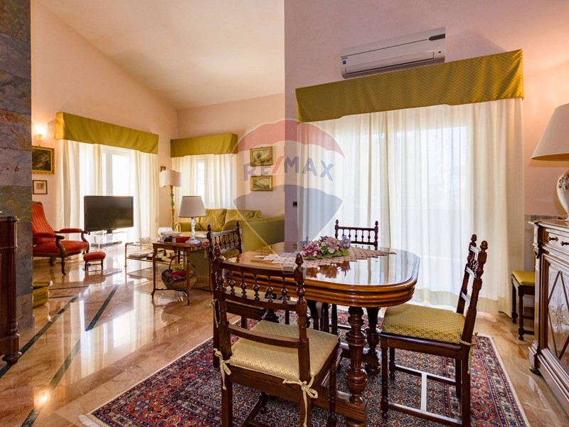 La villa è costituita da un ampio salone , con pavimento composto da diversi marmi pregiati, con camino centrale, l' ambiente è collegato con scale a vista ad un ampio soppalco in parquet di iroko arredato con libreria in legno di rosa, vi è possibilità inoltre di posizionare un tavolo da biliardo . La zona notte , sempre in parquet di iroko , è costituita da due stanze da letto con balconi e due bagni( uno di rappresentanza è rivestito da un mosaico di diversi marmi impreziosita da ampia specchiera) . La cucine , rivestita da piastrelline dipinte a mano , da artigiani di Caltagirone, riproducono un pavimento siciliano del 600. Al piano secondo si trovano ancora altre tre stanze da letto e altri due bagni . I marmi, le porte e le soluzioni di arredo sono originali in quanto curati da un professionista di arredo dinterni. E' stata costruita da un unico proprietario circa 25 anni fa e nel 2022 ha usufruito di unintervento di riqualificazione energetica ( ecobonus 110%) con sostituzione di nuovi infissi a tenuta termica ed acustica, con due impianti di fotovoltaico di 6 kw ciascuno e due colonnine per ricarica di macchine elettriche. Tutti gli ambienti sono riscaldati con termosifoni alimentati da caldaie a basso consumo e da split per laria condizionata. La Villa è circondata da un giardino di 1600 mq , con splendide palme , ulivi , castagni, arance, limoni e numerosi alberi ornamentali. Infine, a completamento di questa proprietà, cè una grande piscina di 12x6 metri, rivestita di mattonelline di mosaico verde e azzurro, con zona fitness coperto di 50 mq e con dependance di 80 mq, climatizzata (cucina , bagno, forno a legna con barbecue e una piccola stanza per ospiti). Tutta la proprietà è circondata da alte mura che ne consentono la massima privacy e sicurezza.