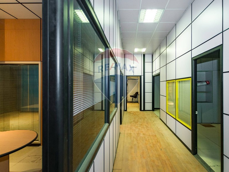 La zona uffici (anch'essa rimodulabile) è composta da svariati ambienti oltre sei servizi e si presenta in discreto stato.