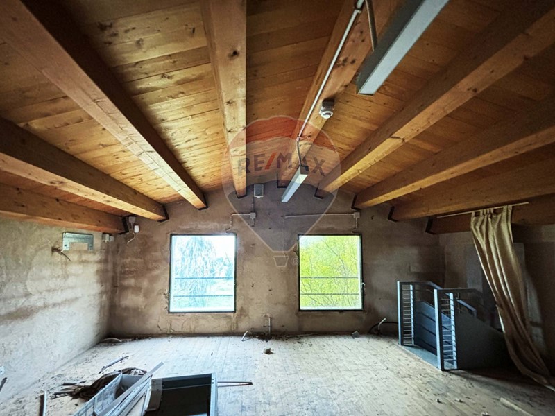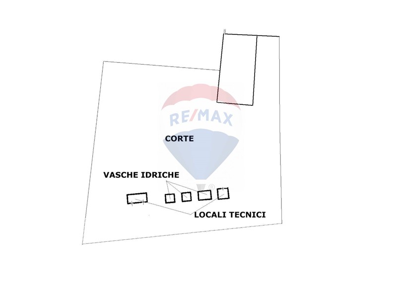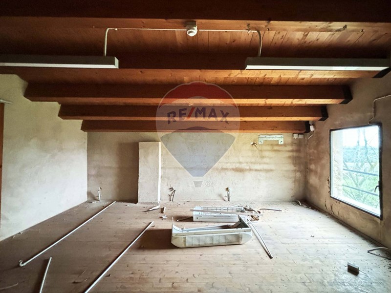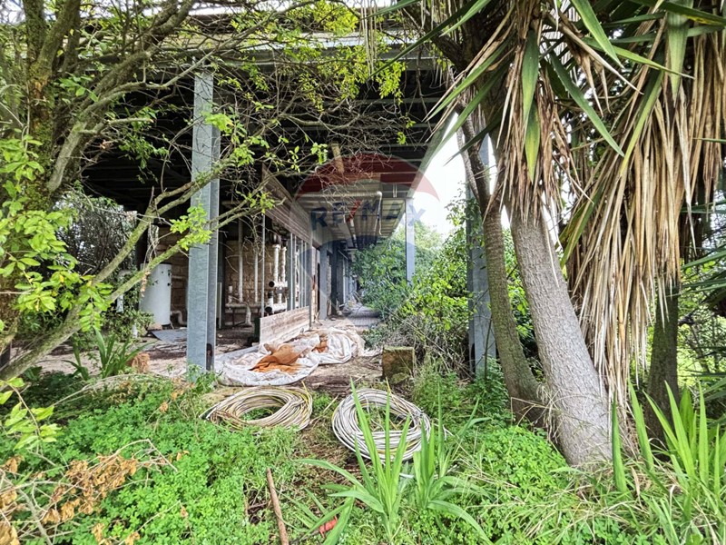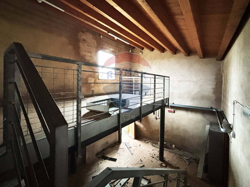 un magazzino di mq. 420 commerciali, costituito da due ambienti, tre locali tecnici, un portico, corte, soprastante terrazzo esclusivo e tre vasche irrigue;