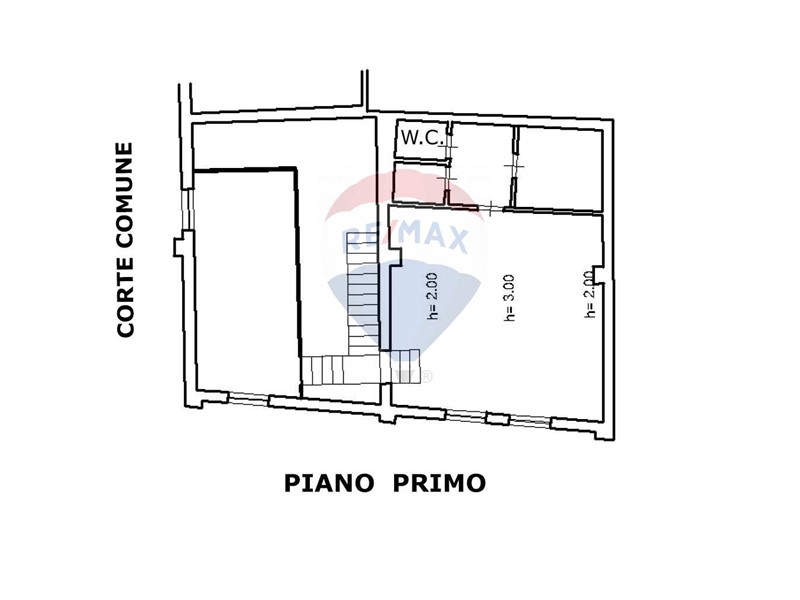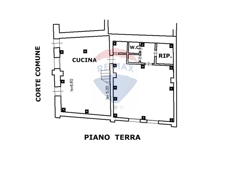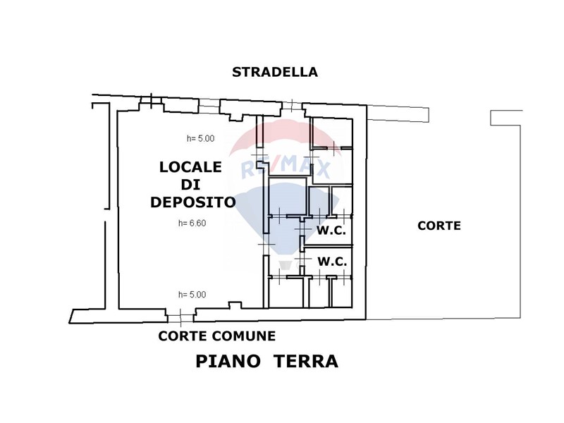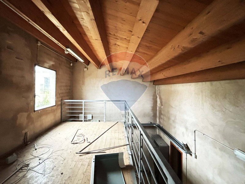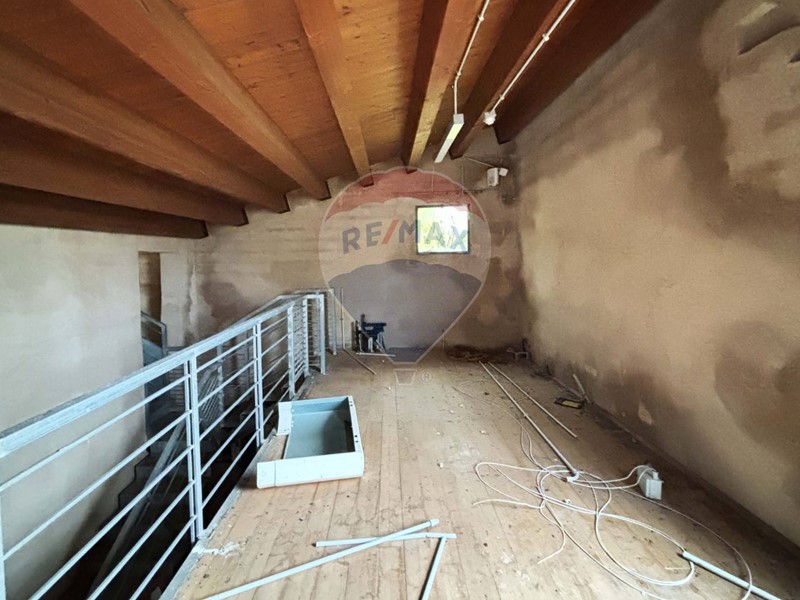 Un magazzino di piano terra di mq. 140 commerciali, costituito da ampio vano e servizi con una altezza minima di mt. 5,00 e massima di mt. 6,60;