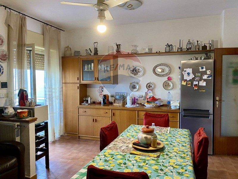 Il corridoio accompagna di fronte al salone ad una cucina soggiorno molto grande con affaccio su veranda su retro-prospetto.