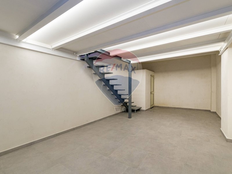 Il piano scantinato è fornito di un ampio cancello esterno automatizzato su rampa carrabile, impianto antincendio, sistema di videosorveglianza esterna, scala pedonale di comodo accesso, illuminazione esterna con faretti e spazi di percorrenza e di manovra.